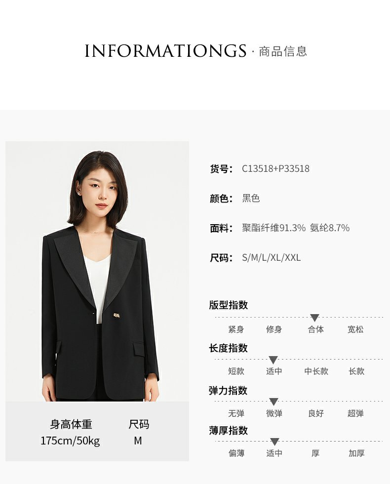 IWY/时尚干练黑色女士职业西服套装女秋冬高级垂感西装外套设计感正装C13518+P33518