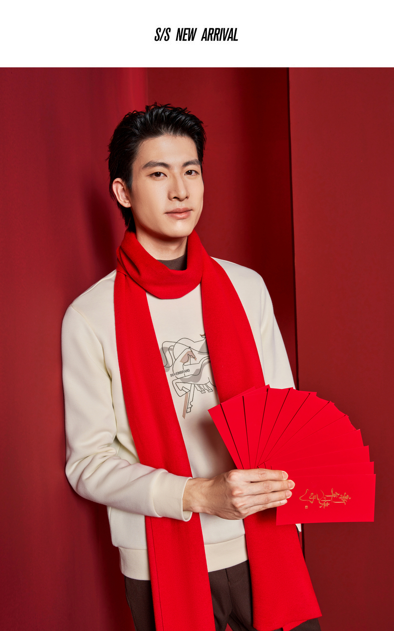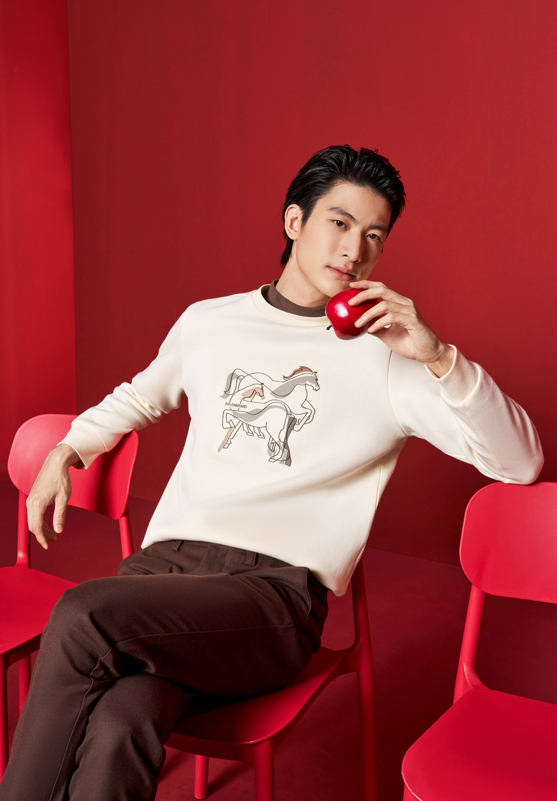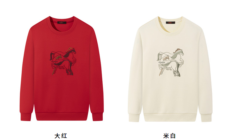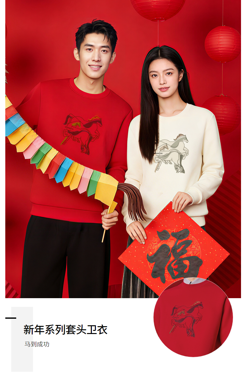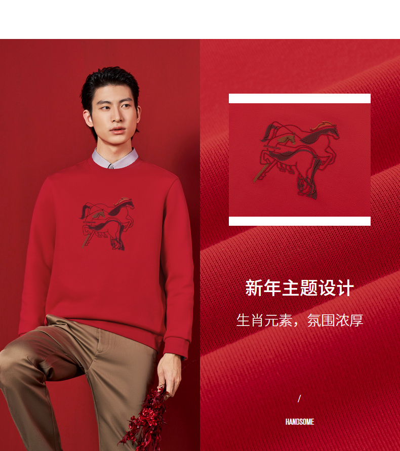 【新年系列】柒牌男装2026圆领弹力马年新疆棉长袖套头中青年卫衣