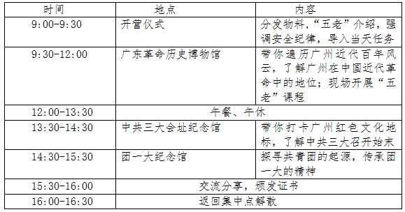 红色研学路线所选的红色革命史迹,是开启广州红色之旅必打卡地,通过踏访红色基地,穗港澳青少年们将与“五老”同行,聆听“五老”讲述红色故事。在感受、传承红色精神的同时,为青少年搭建交流平台,展开小组讨论,进行总结分享,畅谈所看所思,激发青春活力。