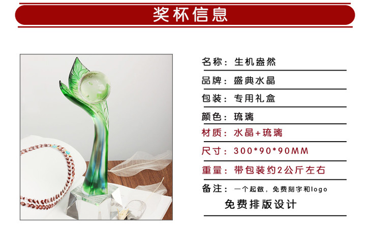琉璃奖杯定制水晶奖杯 纪念品定做 创意礼品 琉璃摆件 商务摆件