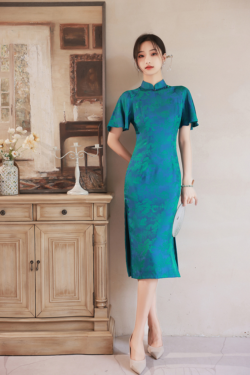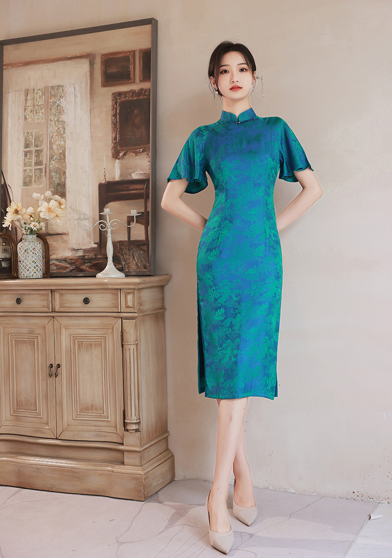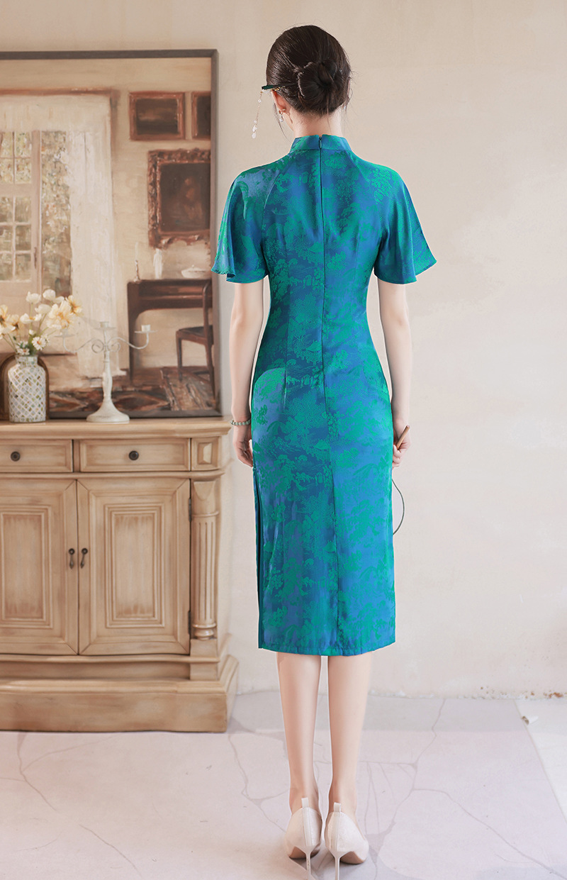日常气质提花丝绸中老年旗袍连衣裙 XL850