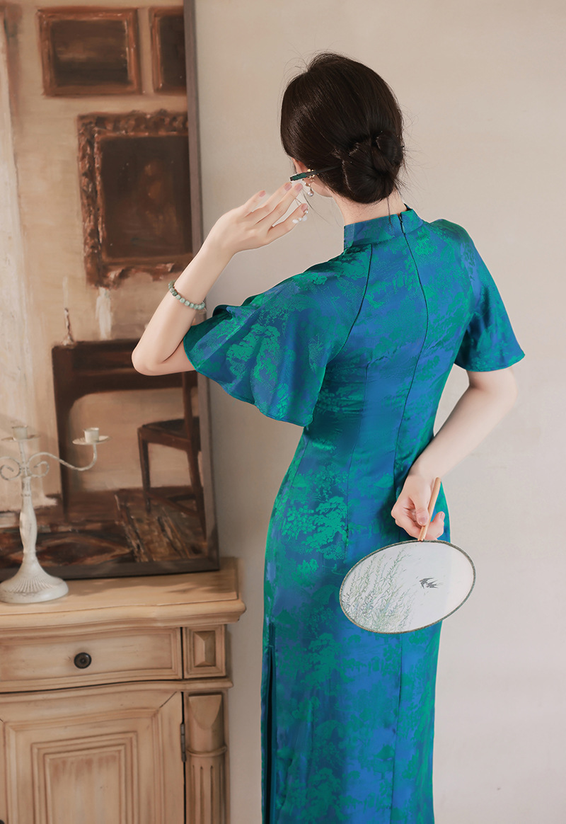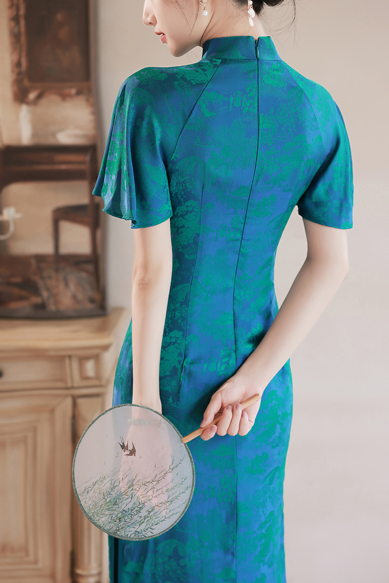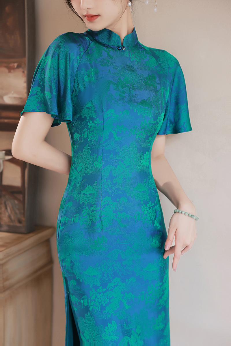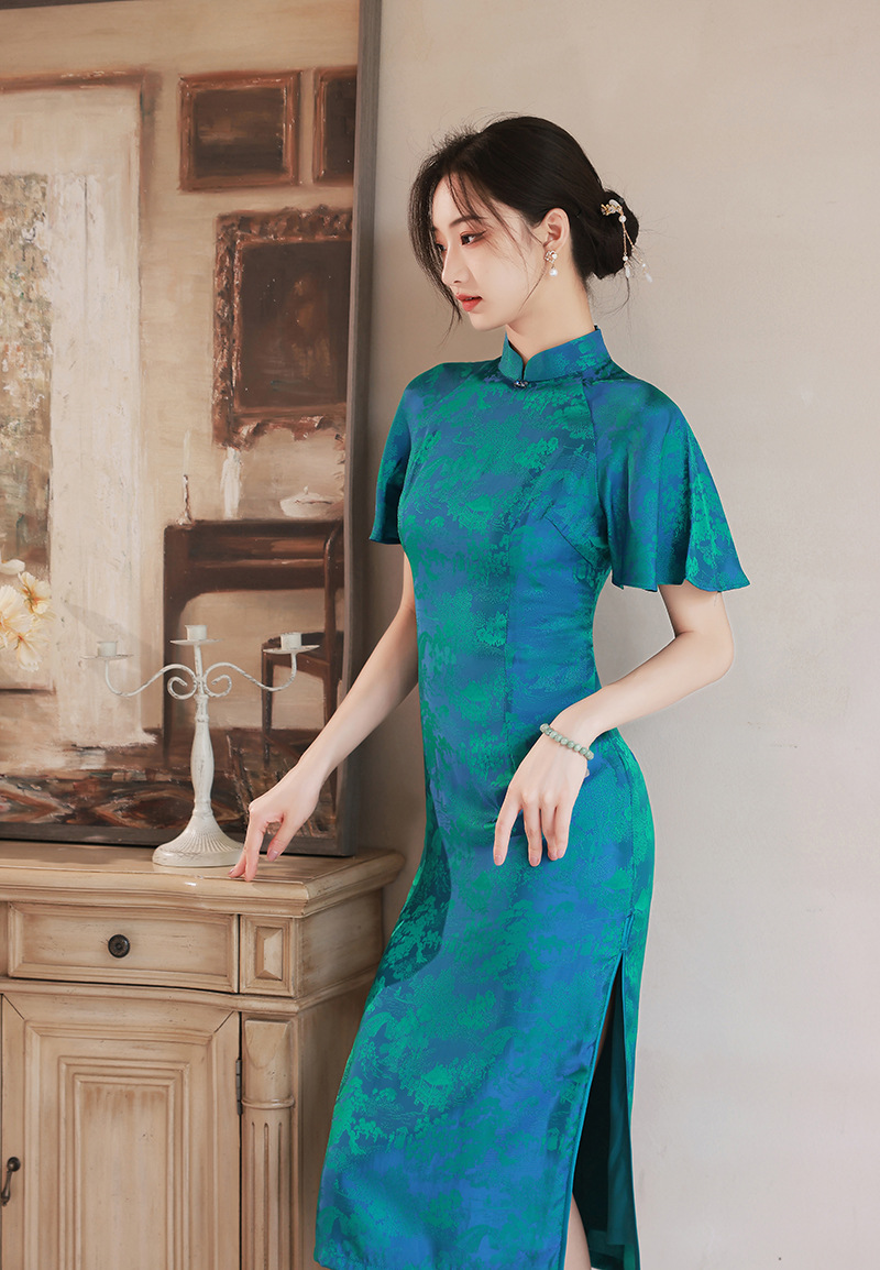 日常气质提花丝绸中老年旗袍连衣裙 XL850