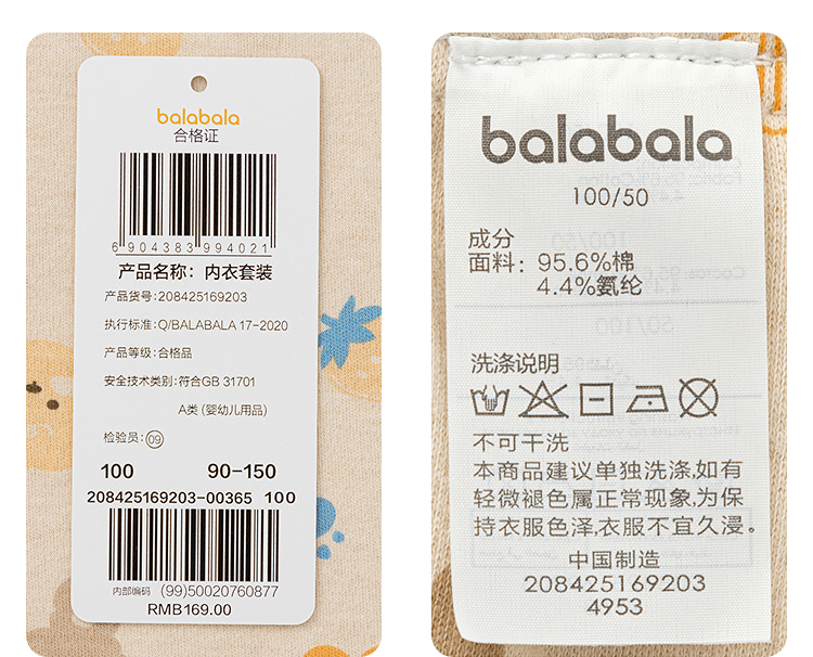 巴拉巴拉balaOne男童女童内衣套装儿童2件套新款童装2025秋冬抗菌