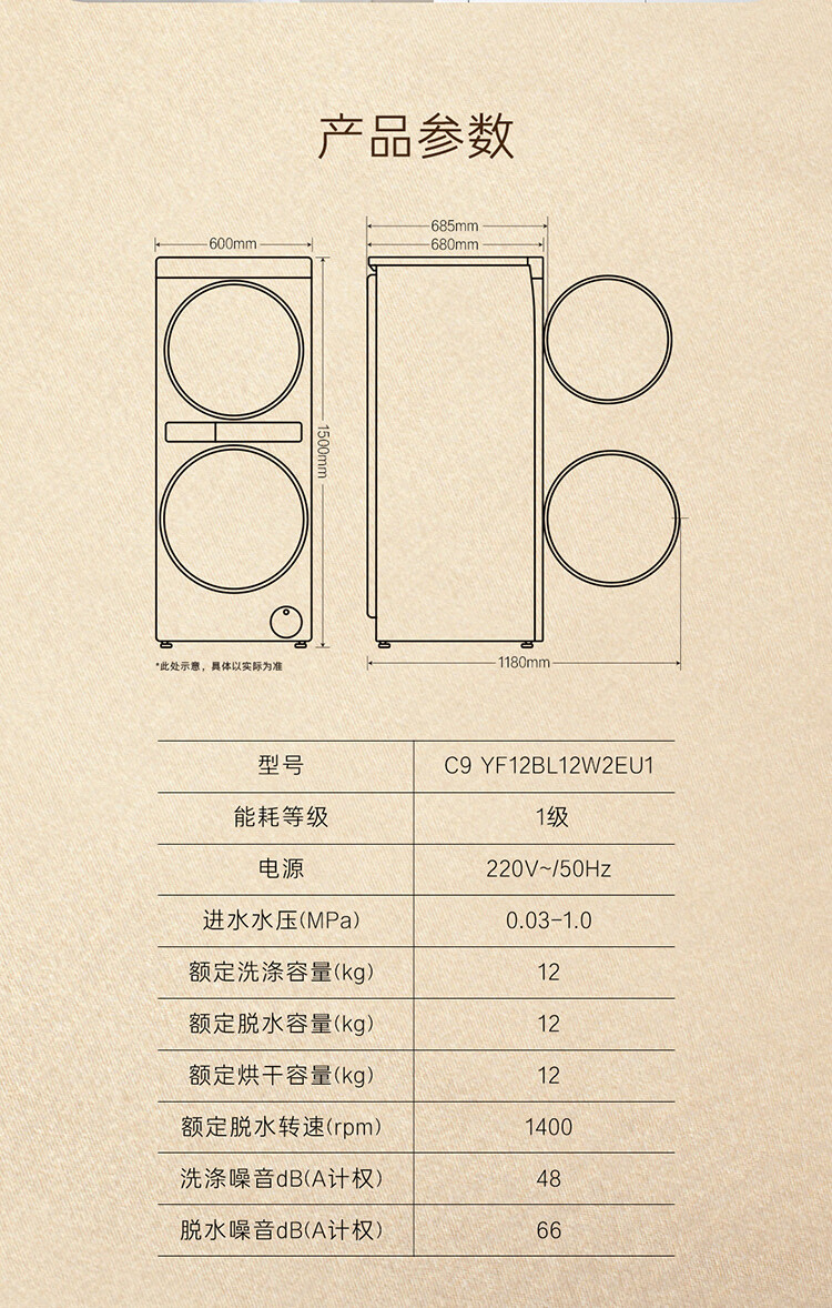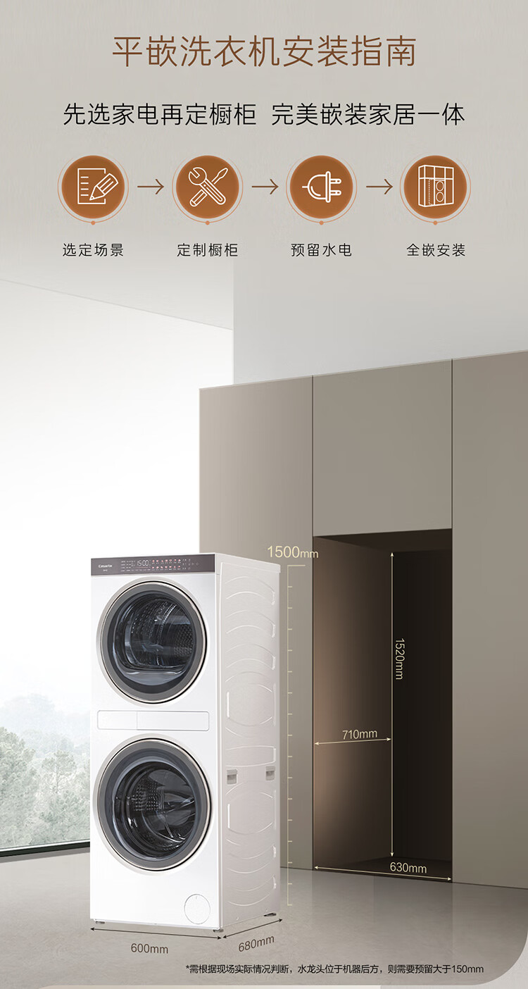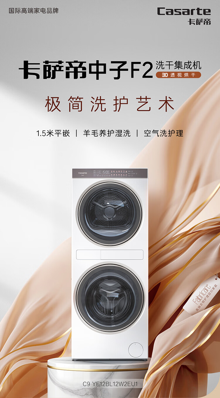 卡萨帝中子和美F2洗干集成机 12+12公斤 3D透视烘干 1.5米纯平嵌入 养护湿洗 紫外除菌 C9 YF12BL12W2EU1