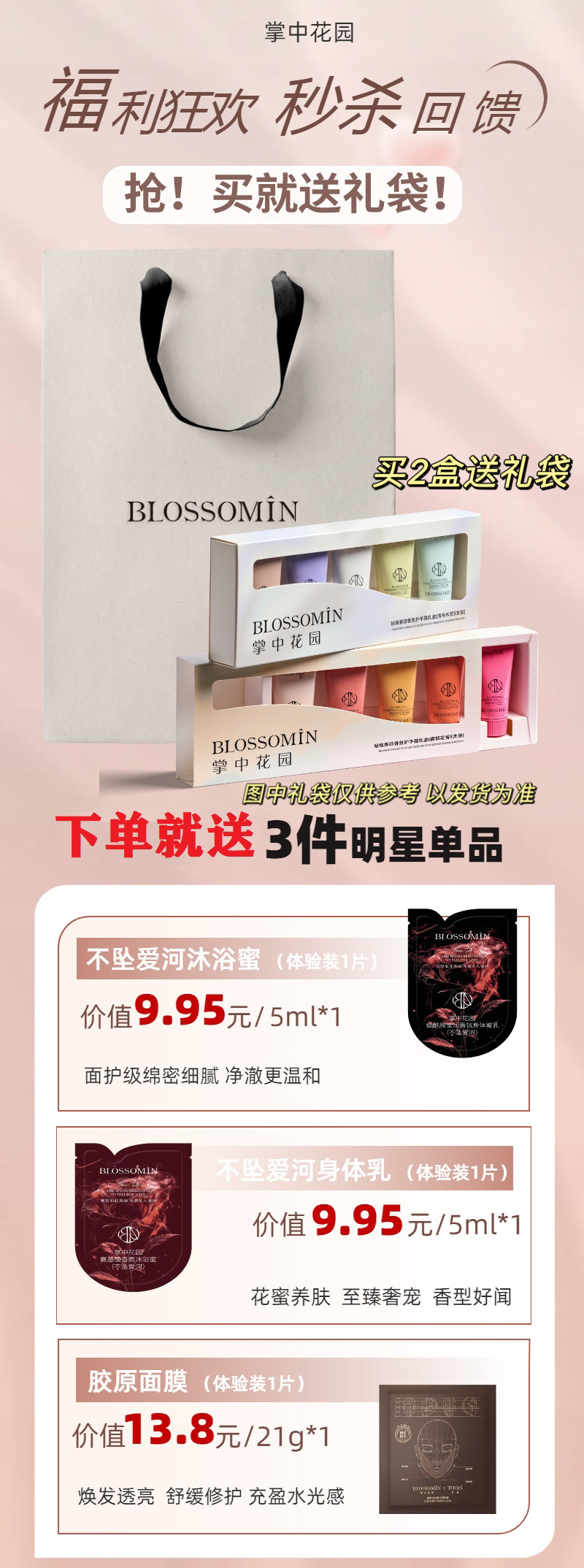 🔥【掌中花园·双旦暴风福利】🔥 💥买2盒护手霜送高定礼袋! 香到上头,涂完手嫩到能掐出水💦!闺蜜见了都要问链接! 💥下单就送3件王炸套装!⏰限时5天 🌟明星面膜1片+沐浴蜜1片+身体乳1片 ✅ 胶原面膜1片 → 脸嫩到能掐水💦 4 ✅ 不坠爱河沐浴蜜1片 → 洗出伪体香,男友狂吸!🌹 ✅ 不坠爱河身体乳1片 → 腌入味了!睡衣都变香薰!🛏️ ⏰ 限时5天!手慢真会哭!