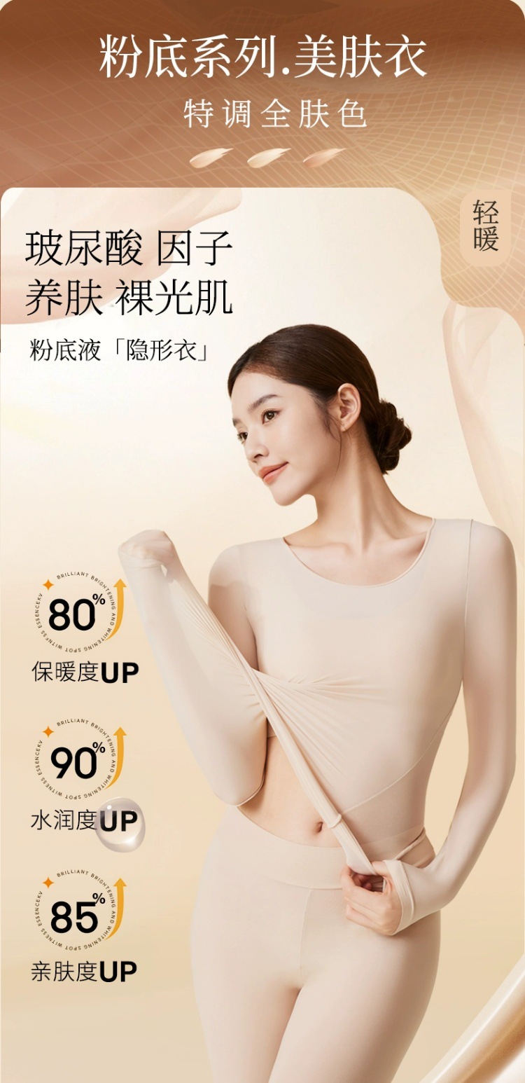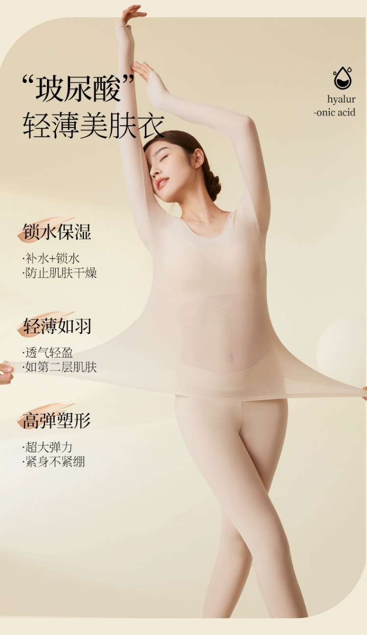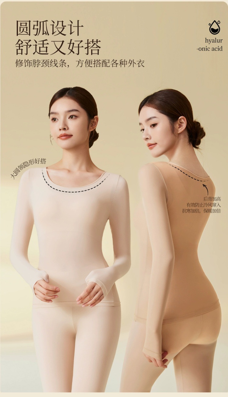 【低至89元/2套】玻尿酸超薄隐形面膜保暖内衣 润肤肌底衣打底秋衣秋裤套装