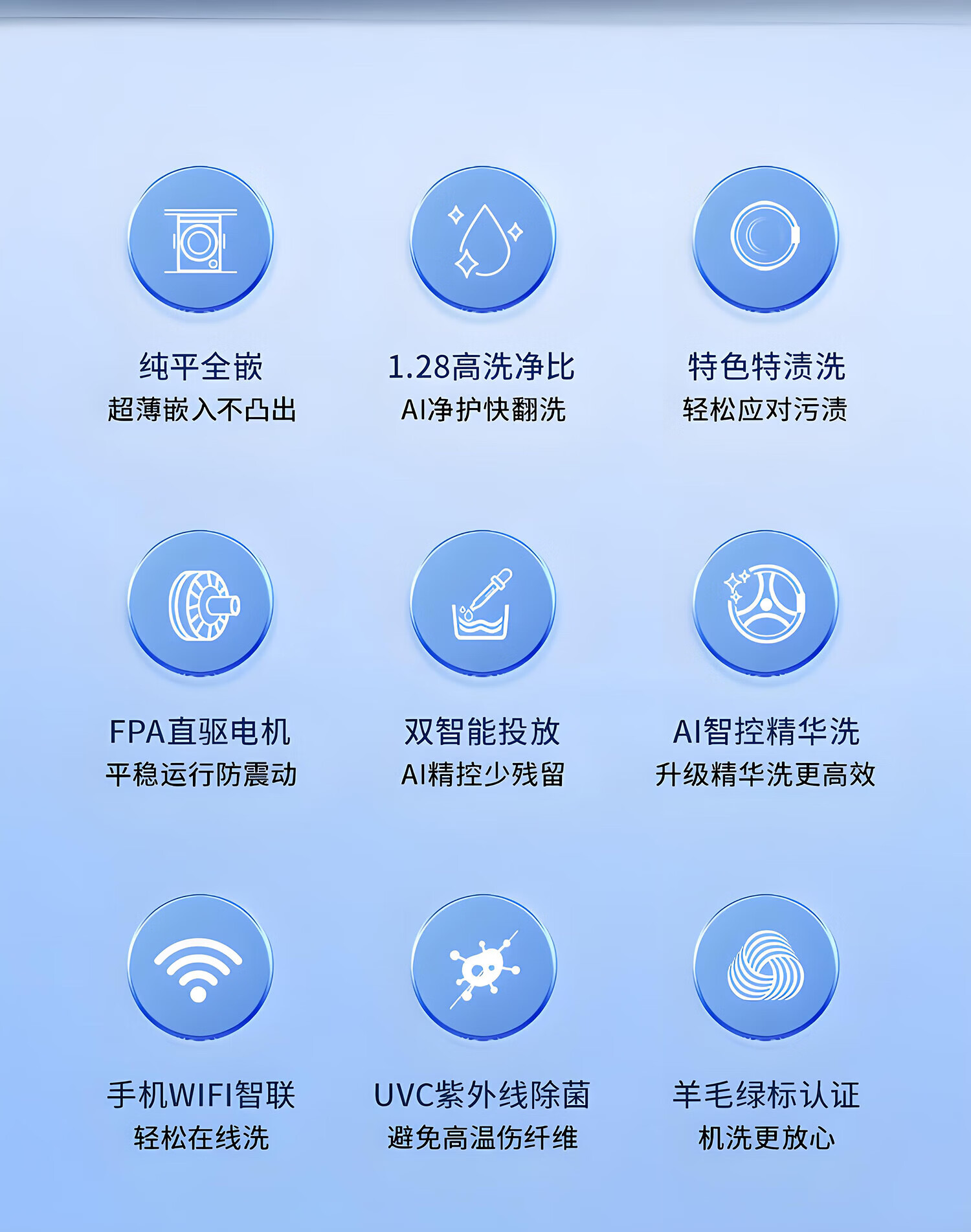 海尔(Haier)天悦A7滚筒洗衣机超薄纯平全嵌1.28洗净比10公斤全自动AI双智能投放直驱精华洗 【单洗滚筒BLEU78A7U1】AI洗丨紫外除菌