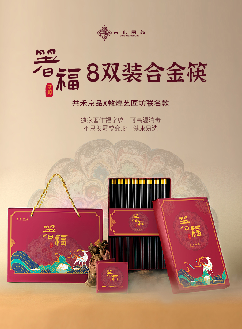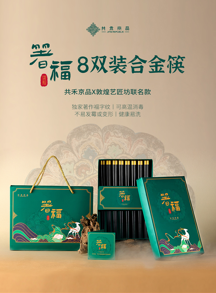 【品名】共禾京品X敦煌艺匠坊联名-箸福8双合金筷