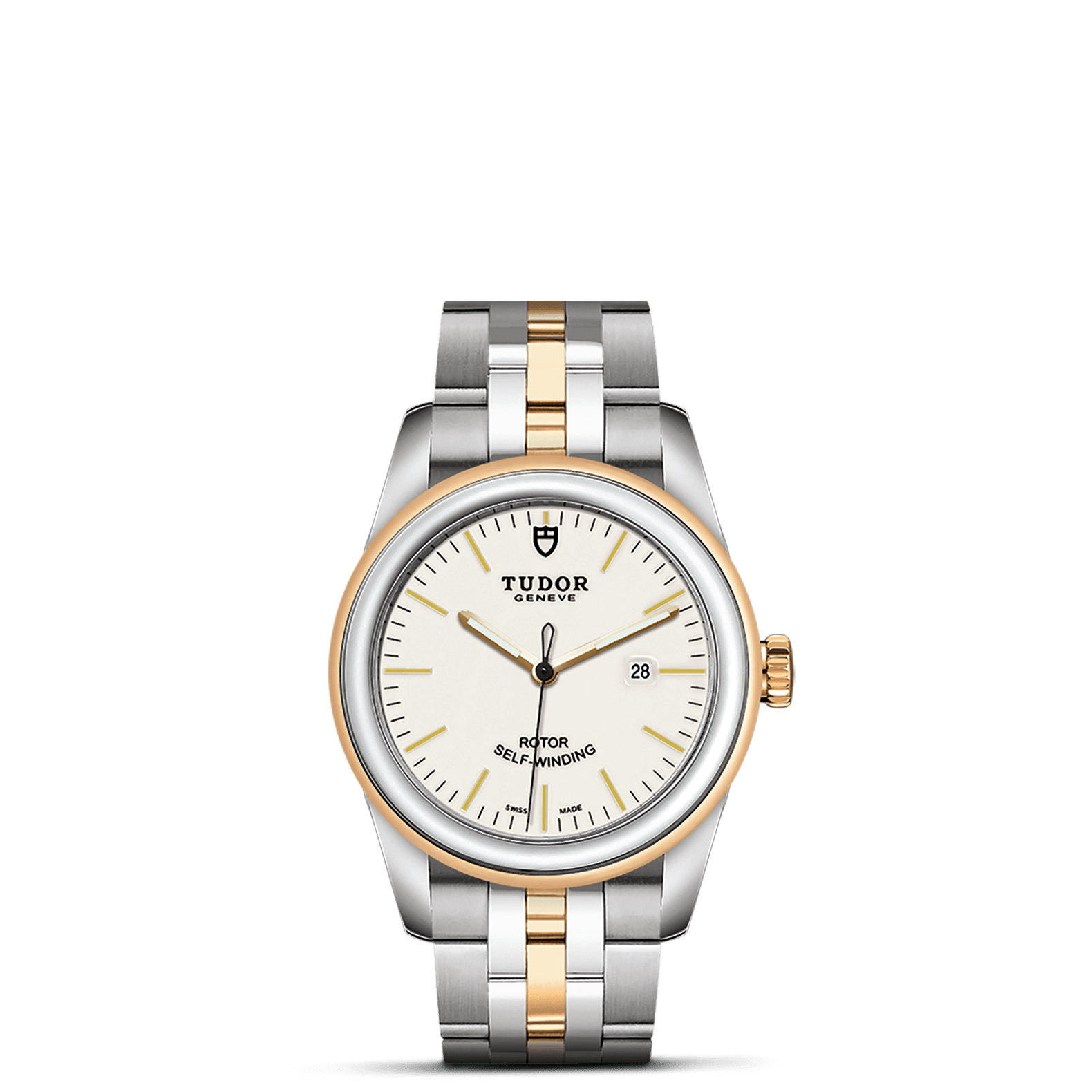 旋入式上链錶冠,饰以帝舵表标志;精钢覆有0.1毫米18K黄金薄层