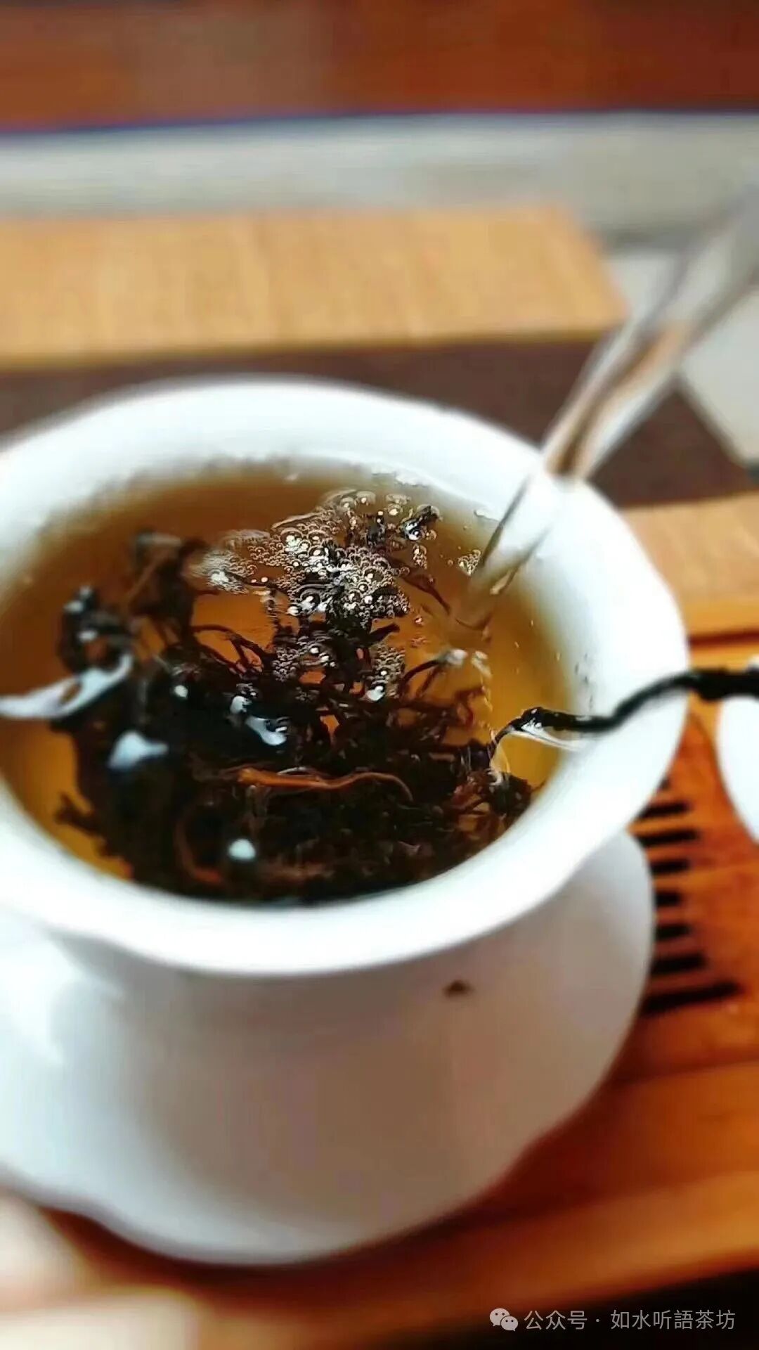 香气层次丰富,极具穿透力,三段式香型变化清晰可辨:热嗅时是浓郁的花果甜香与焦糖香,温嗅转为野兰与青苔的清雅气息,冷杯底则浮现淡淡龙脑与陈皮药韵,交织着木质甘香与果蜜甜香,挂杯持久,余韵悠长,仿佛将整个原始森林的草木芬芳都锁进了杯中。洗茶时,花草甜香悠扬,还透着水煮玉米须般的植物甘甜,叶底的木质香与乳香交织,氛围感拉满。
