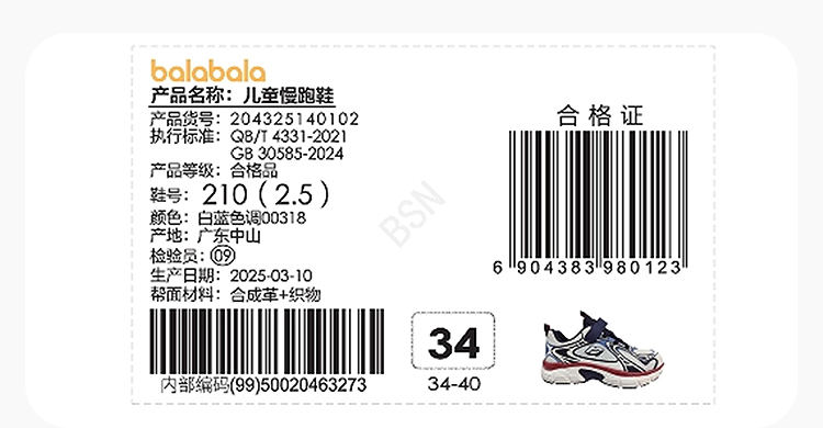 巴拉巴拉儿童运动鞋男童跑步鞋网面透气2025秋季新款