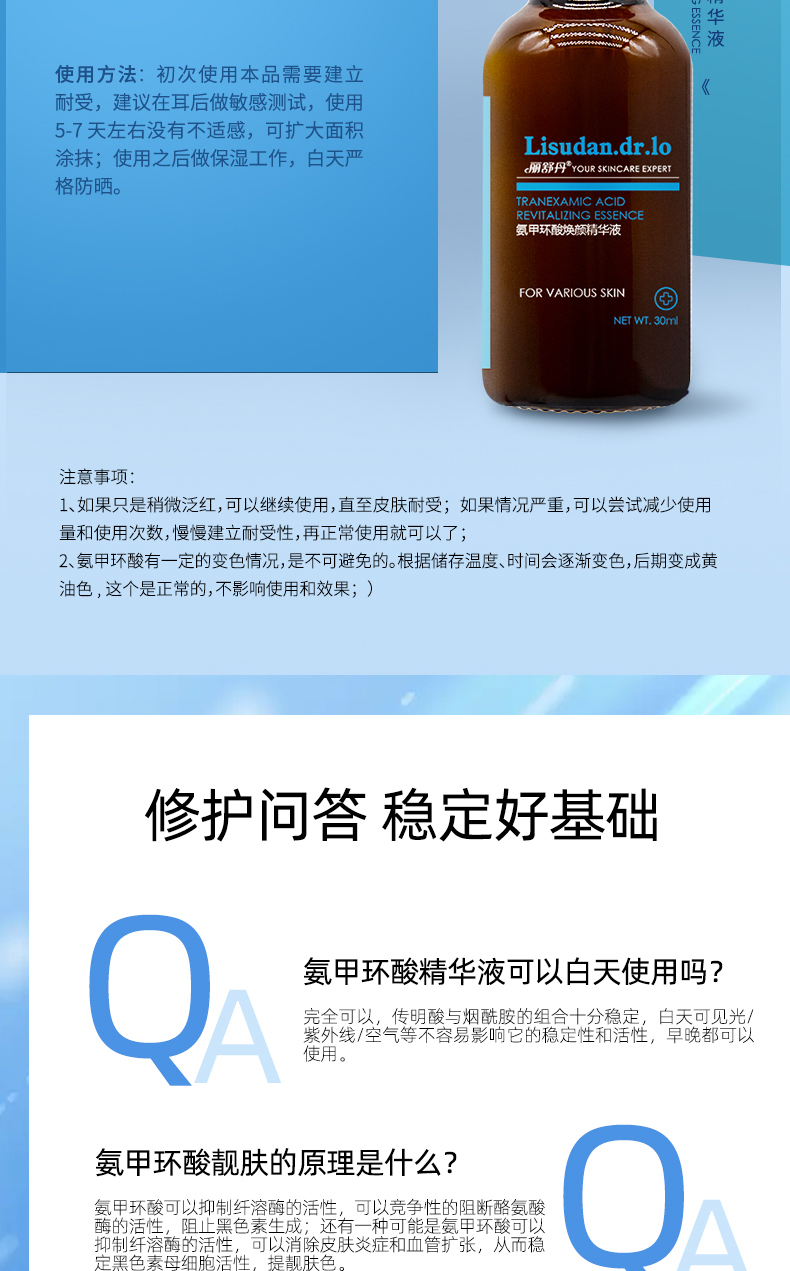 丽舒丹均匀肤色改善暗沉氨甲环酸焕颜精华液3%传明酸4%烟酰胺