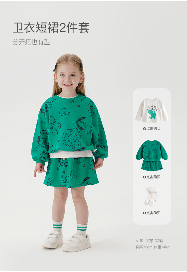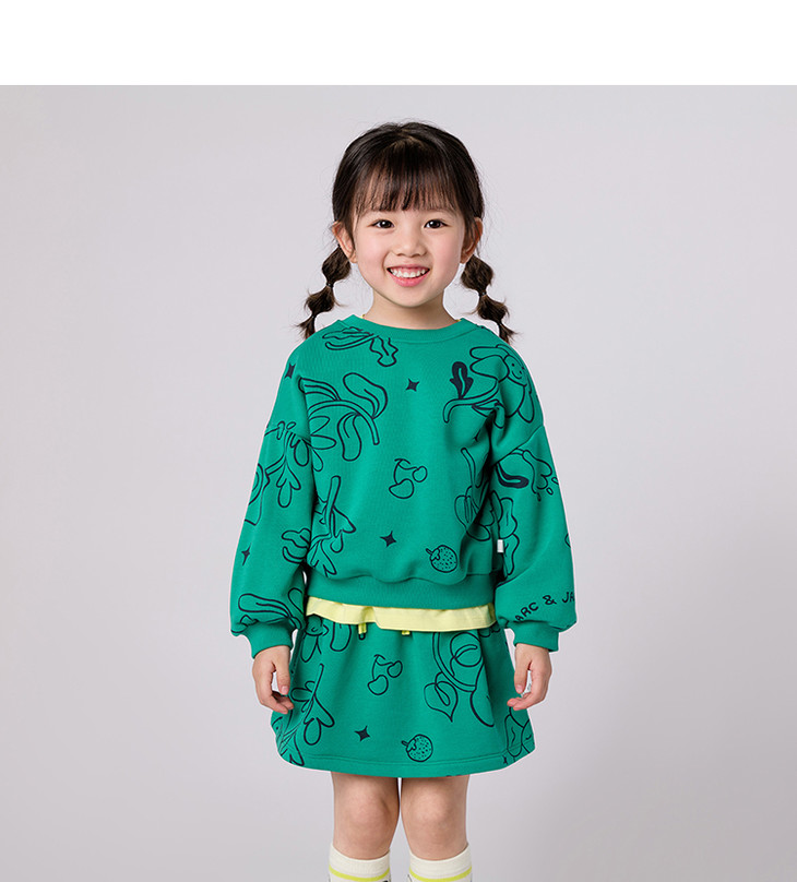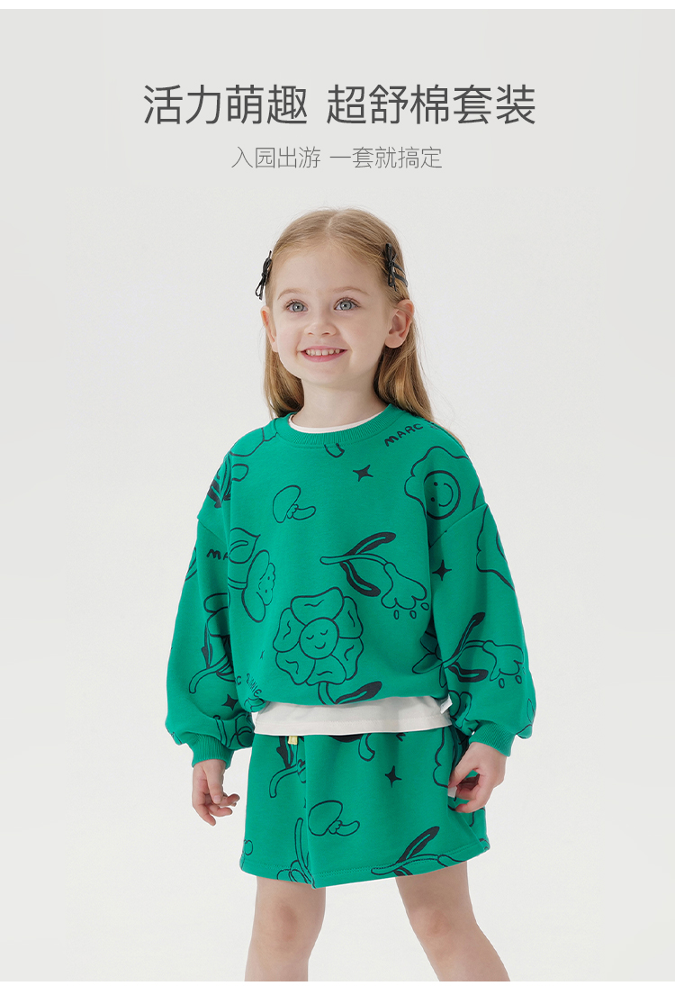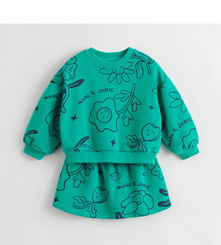 马克珍妮秋装新款 女童植物满印宽松卫衣半裙套装 儿童套装231317