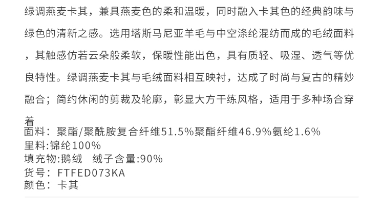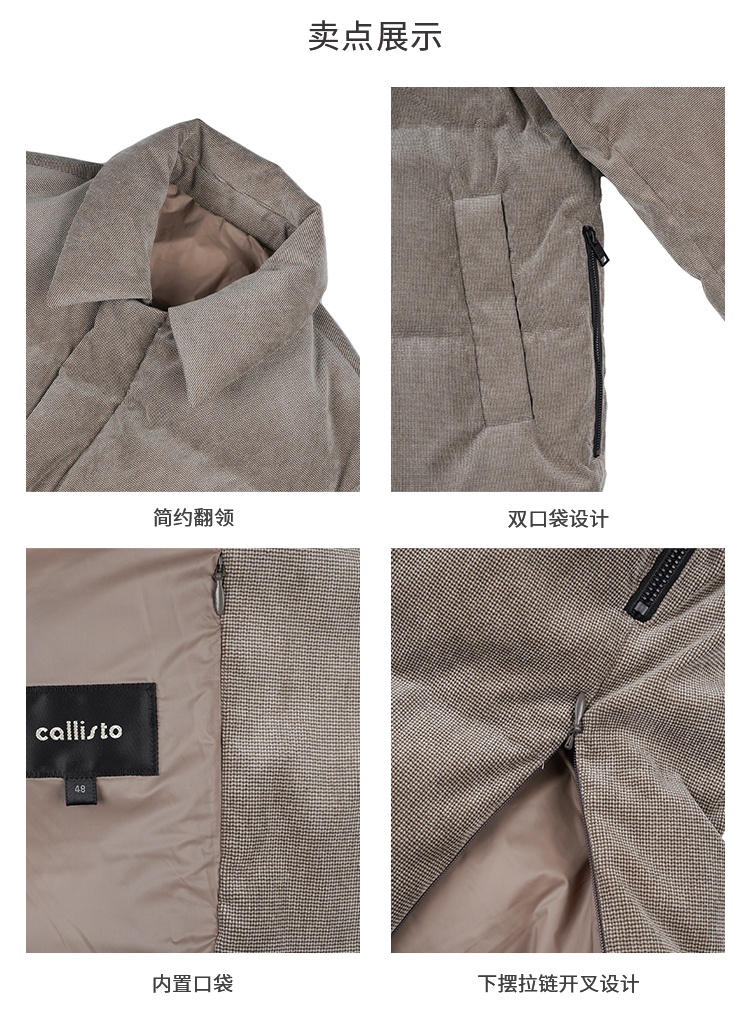callisto“绒”系列卡其色鹅绒羽绒服