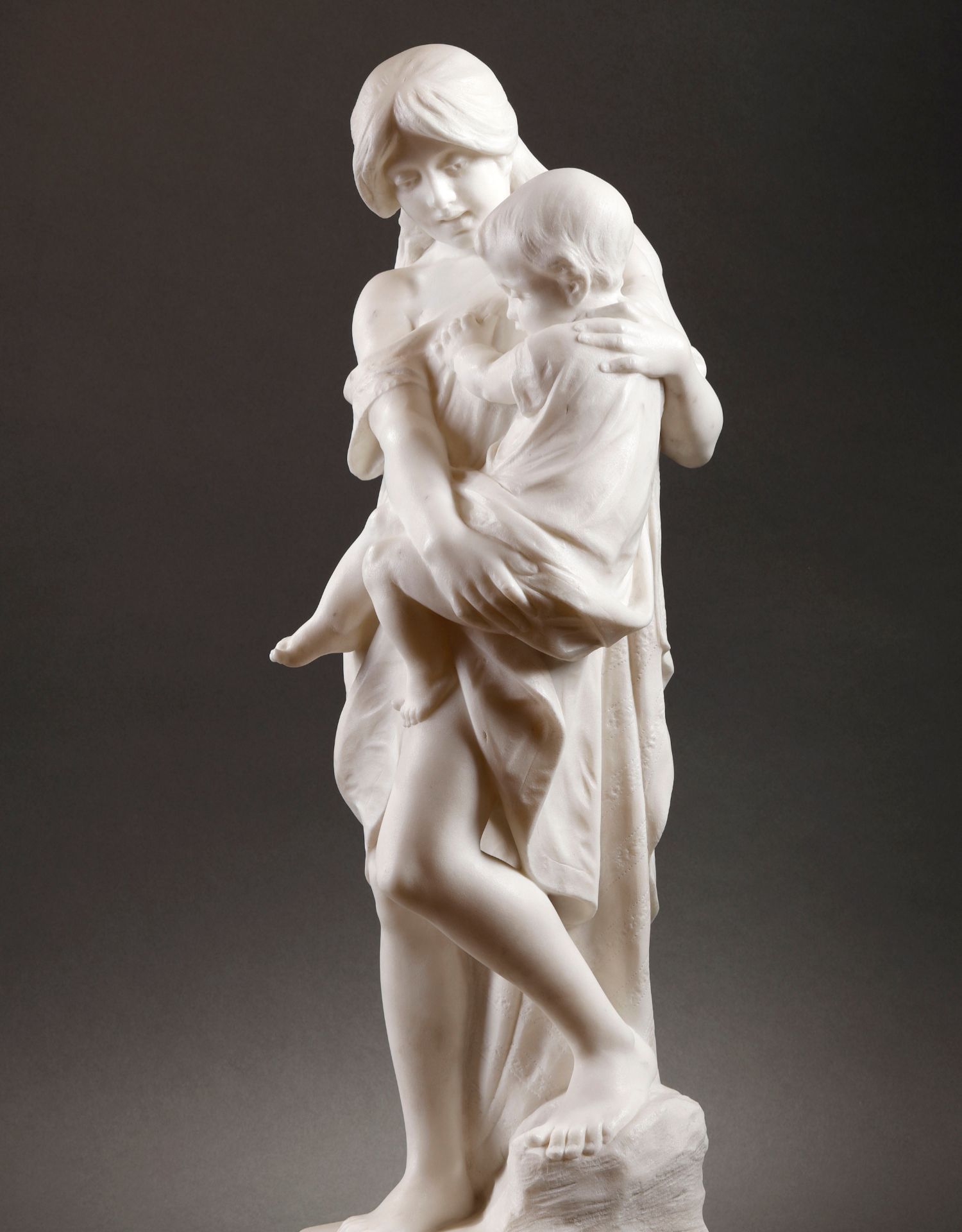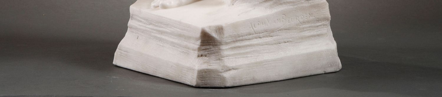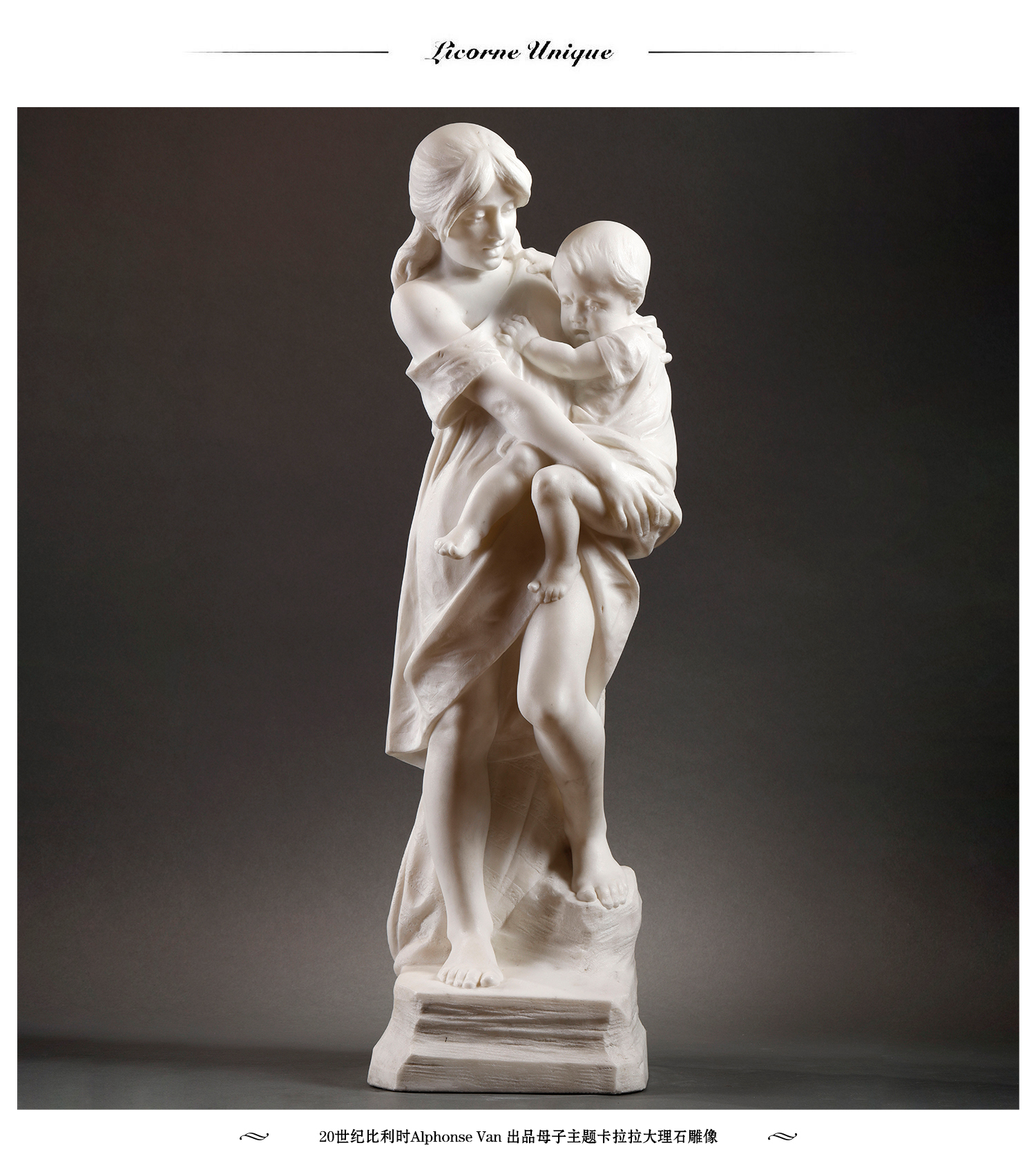 独角鹿西洋古董比利时Alphonse Van出品母子主题卡拉拉大理石雕像