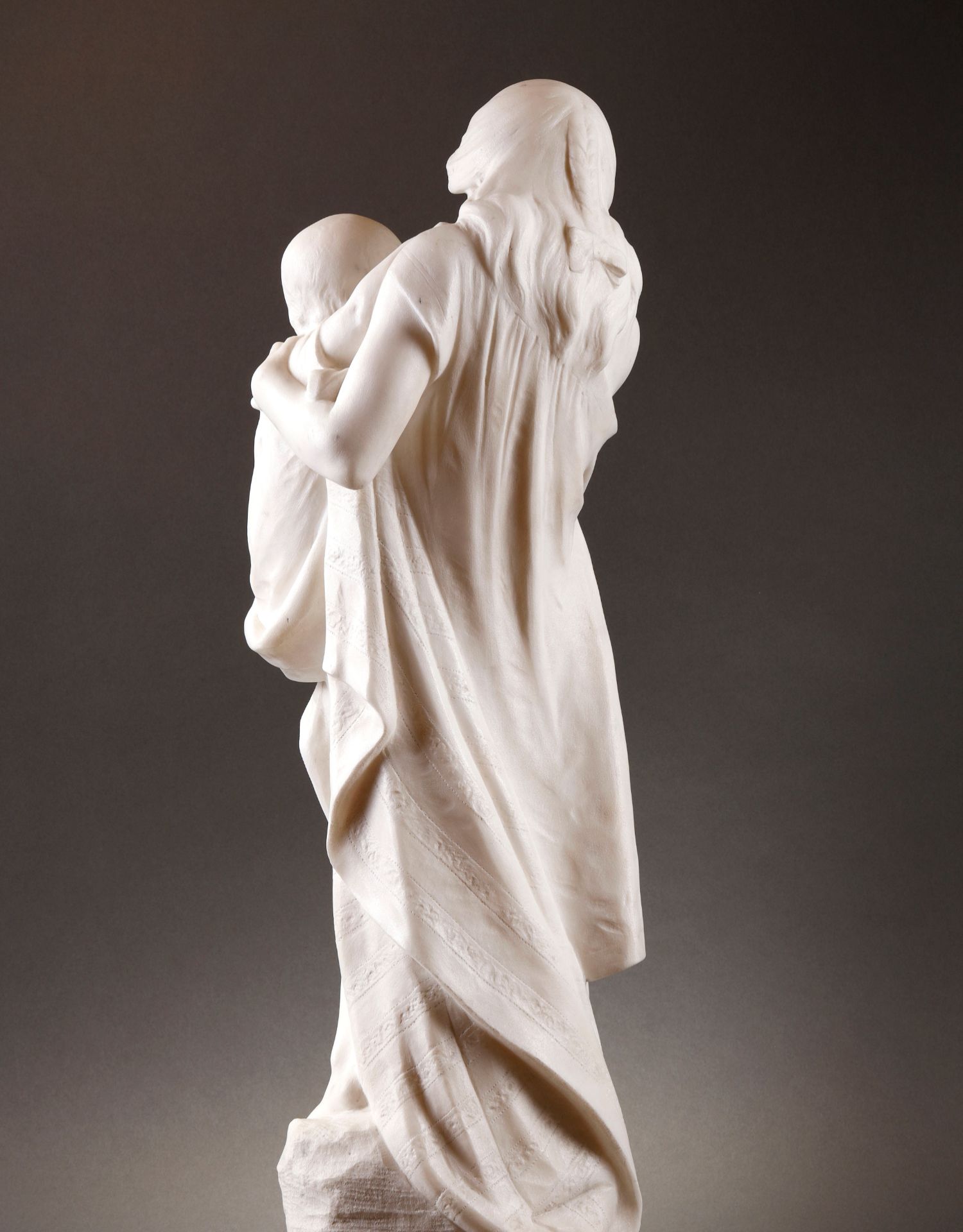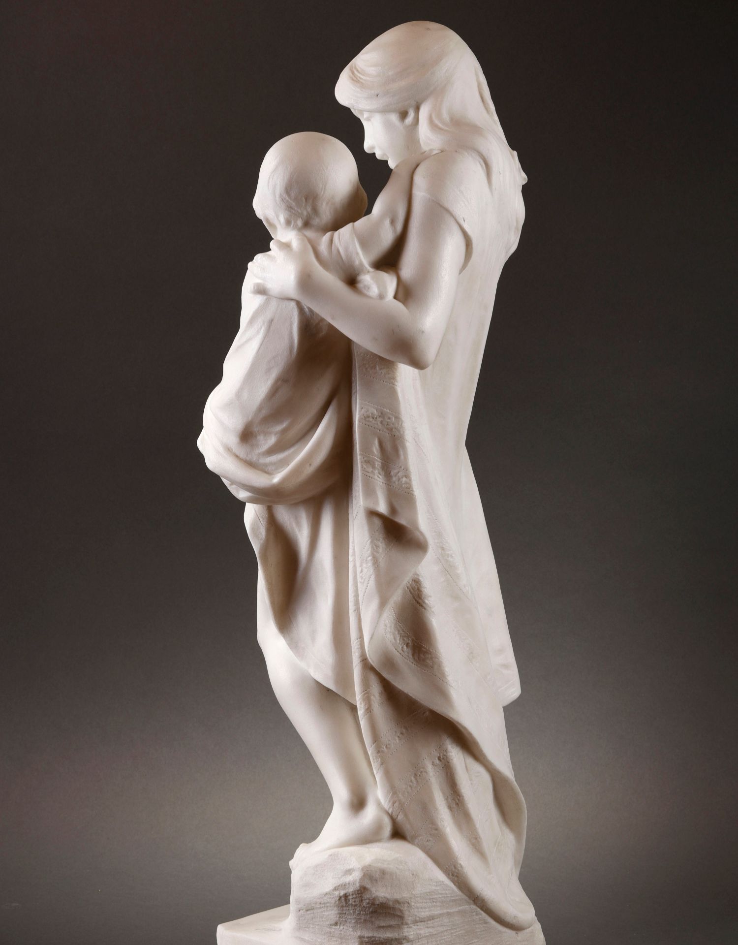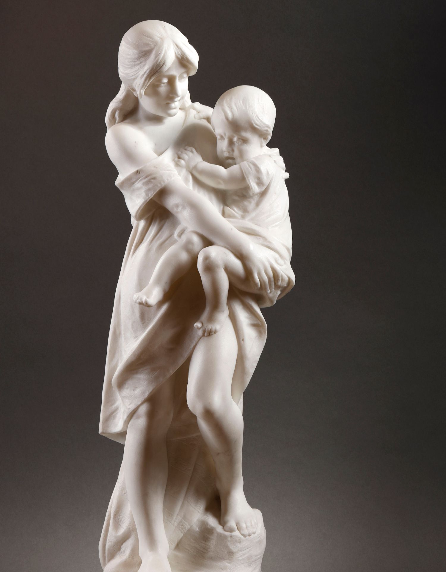 独角鹿西洋古董比利时Alphonse Van出品母子主题卡拉拉大理石雕像