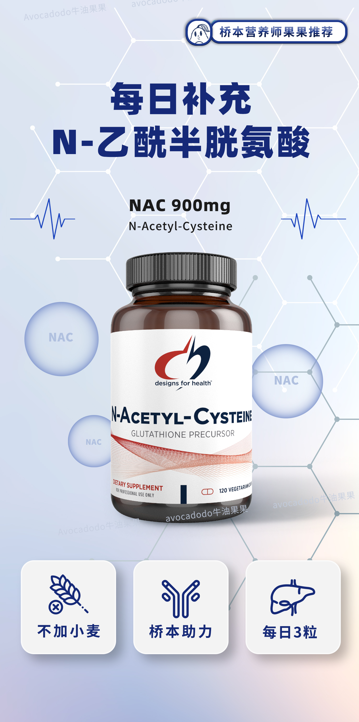 【香港直邮】健康设计 N-Acetyl-Cysteine N-乙酰-L-半胱氨酸(NAC)900mg120粒 牛油果果桥本90天方案