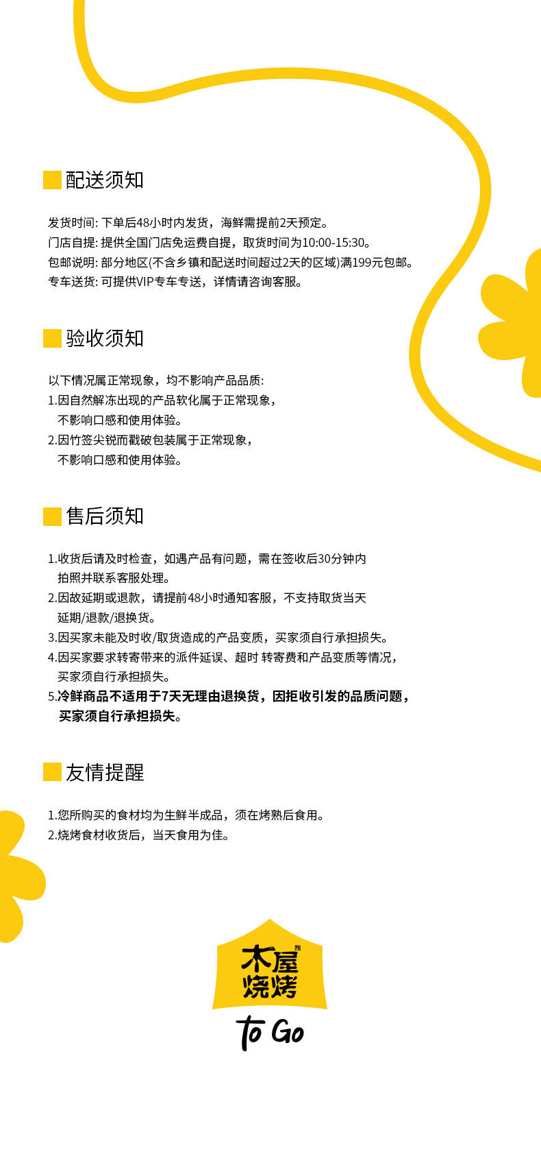 木屋烧烤半成品套装,一键下单,使命必达。 -全国300家门店支持次日到店自提 -全国顺丰包邮,当日下单,次日顺丰送货上门(部分区域除外,实际以顺丰时效为准)