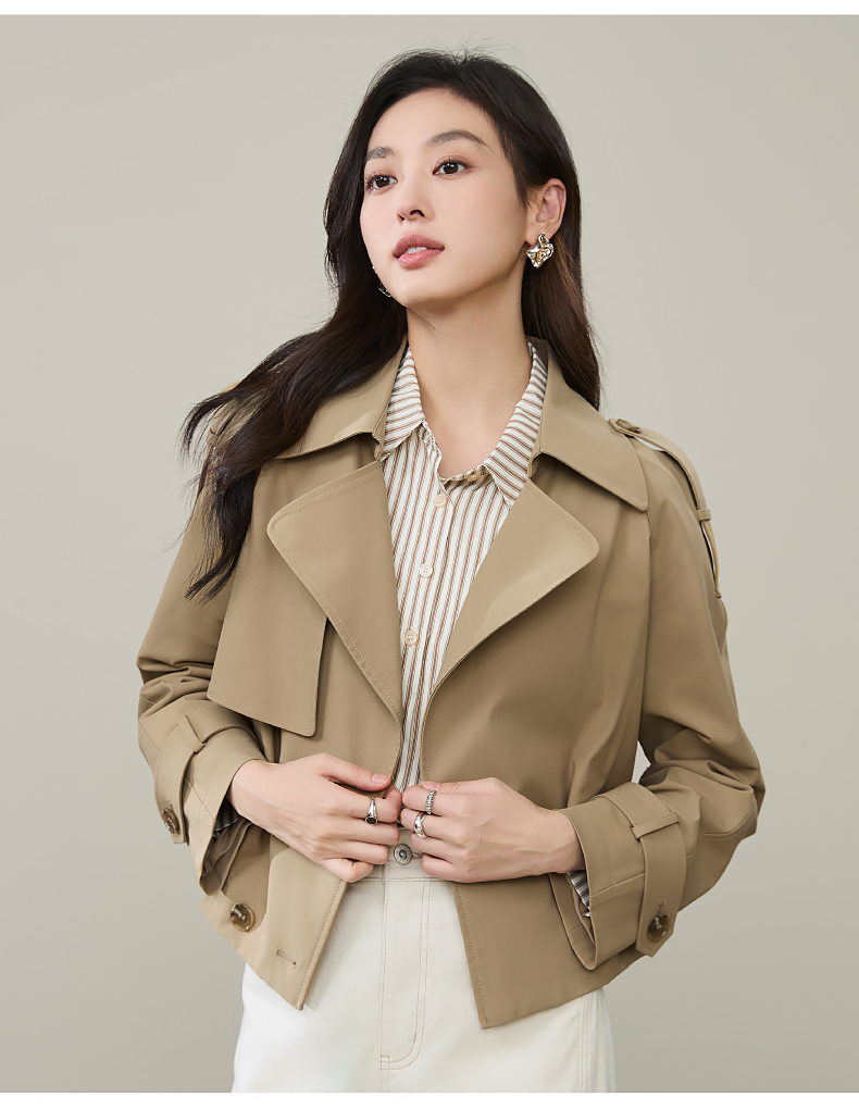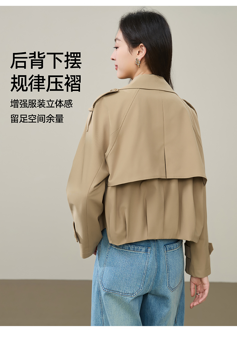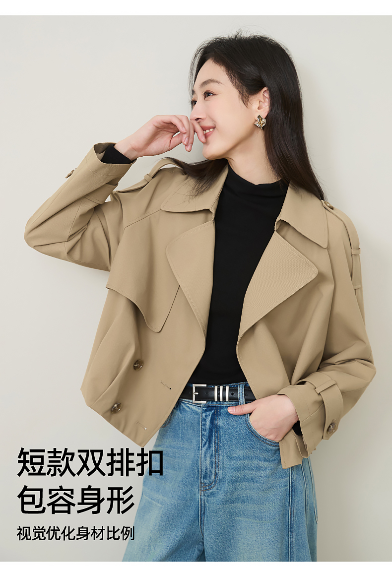 【英伦风-短款风衣】逸阳秋季新款气质翻领通勤休闲外套5236