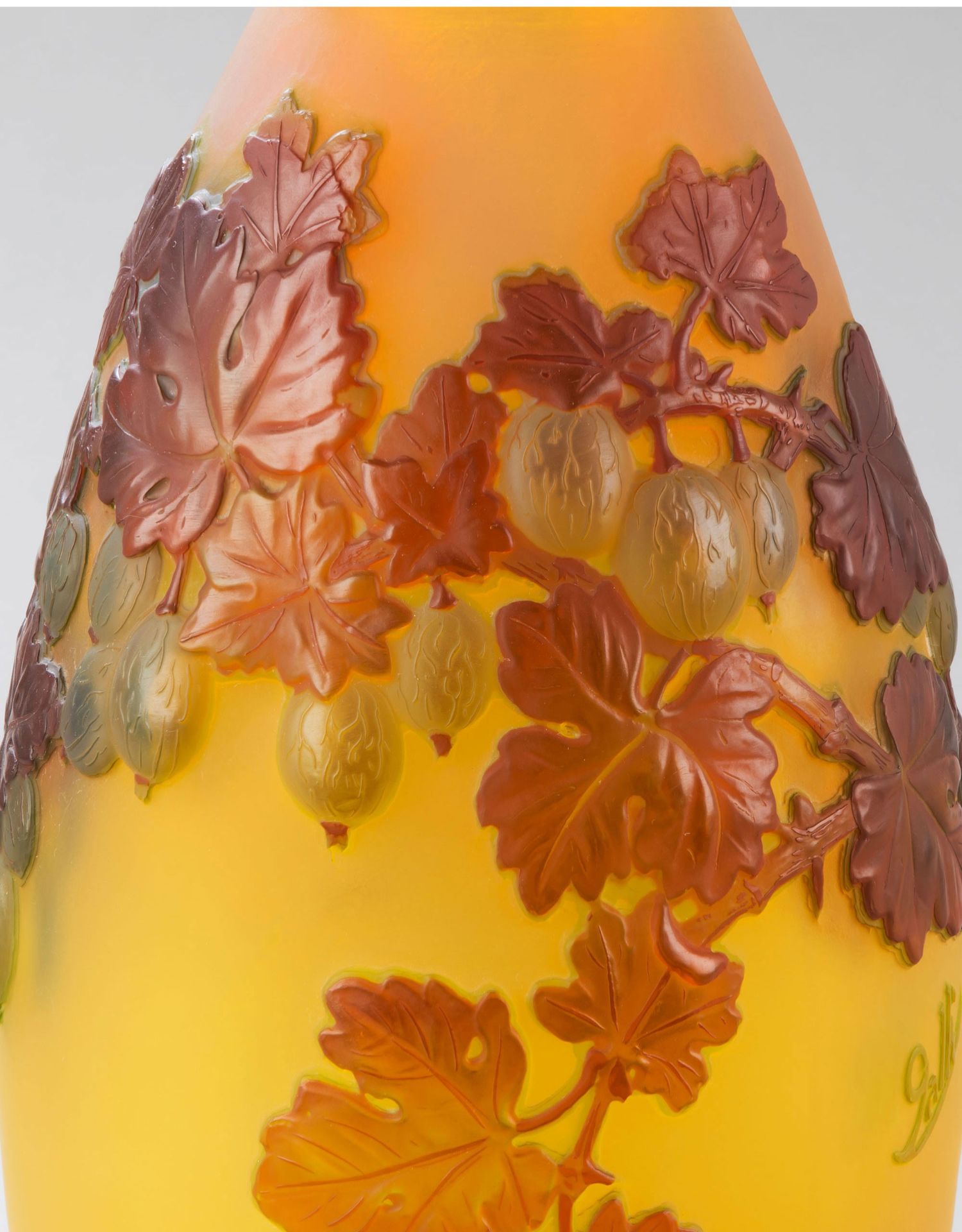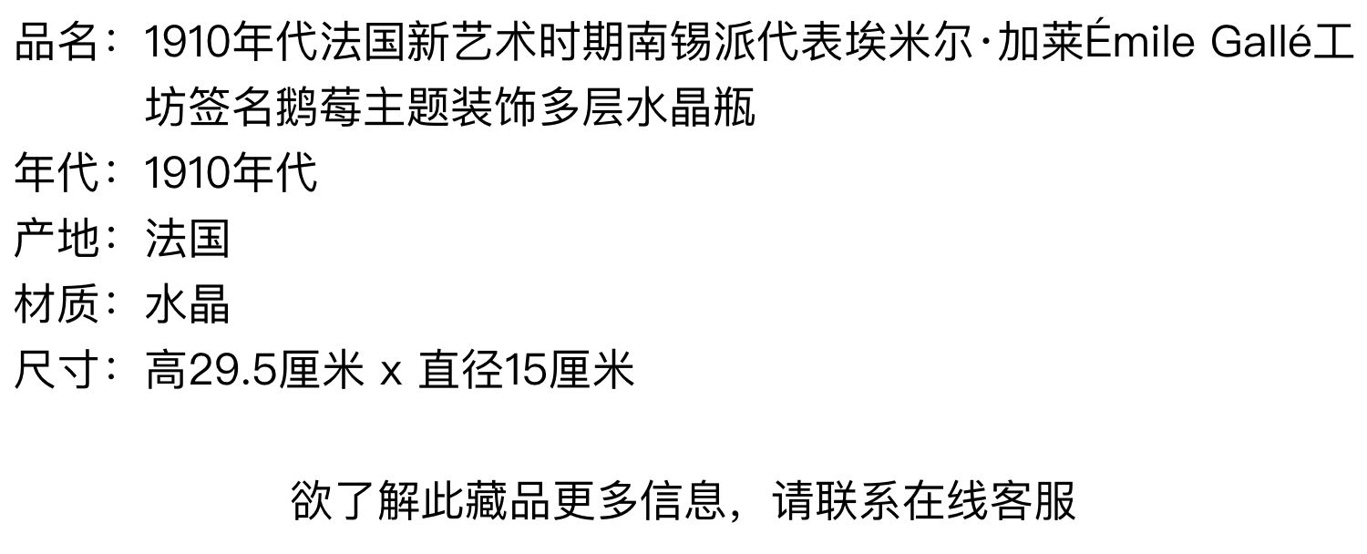 独角鹿西洋古董法国南锡派工坊签名鹅莓主题装饰多层水晶瓶