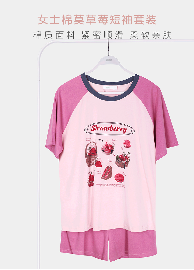 美季美优女士棉莫草莓短袖套装J420303
