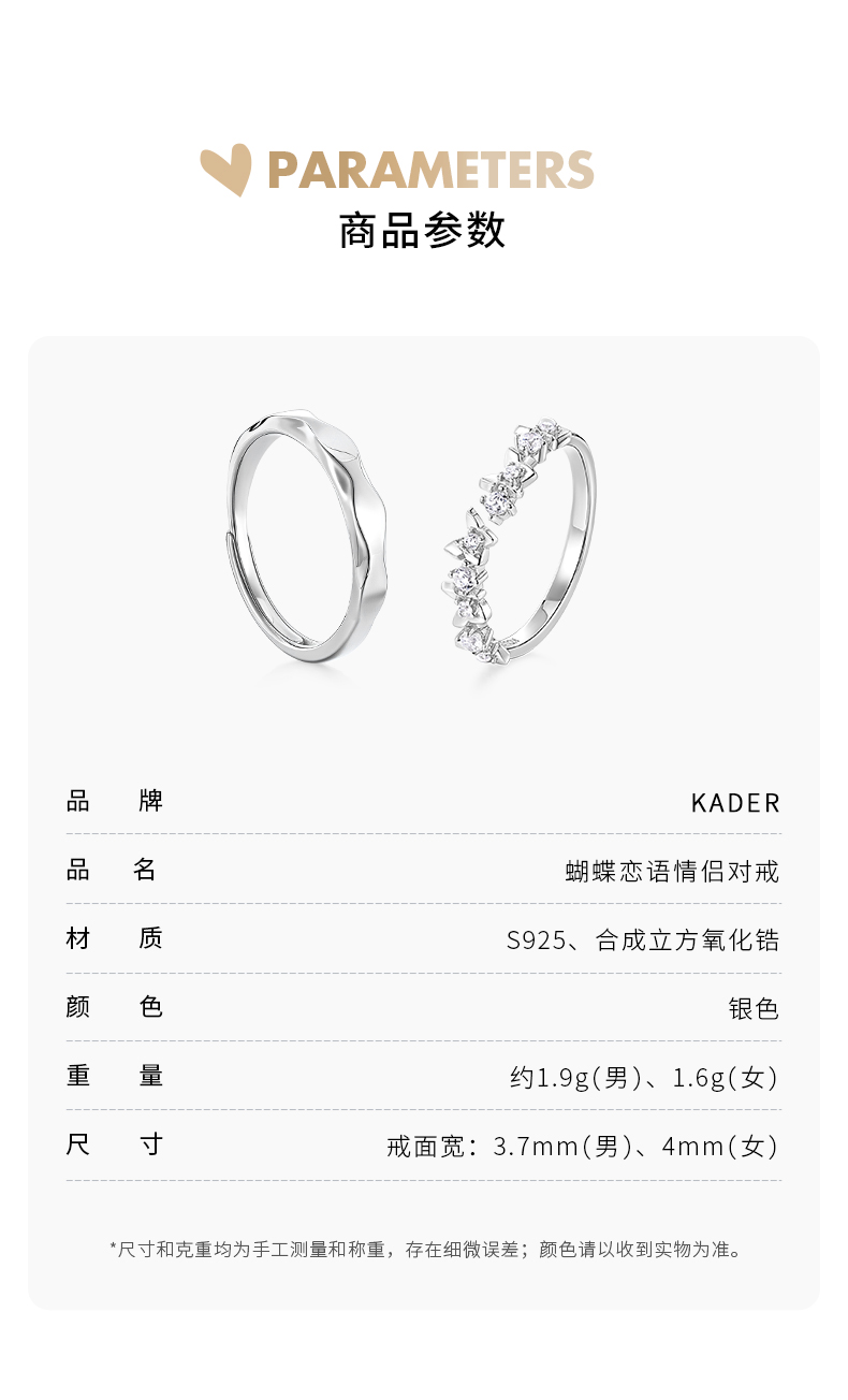 KADER卡蒂罗 蝴蝶恋语情侣对戒 925银戒指小众设计2023新款爆款七夕礼物