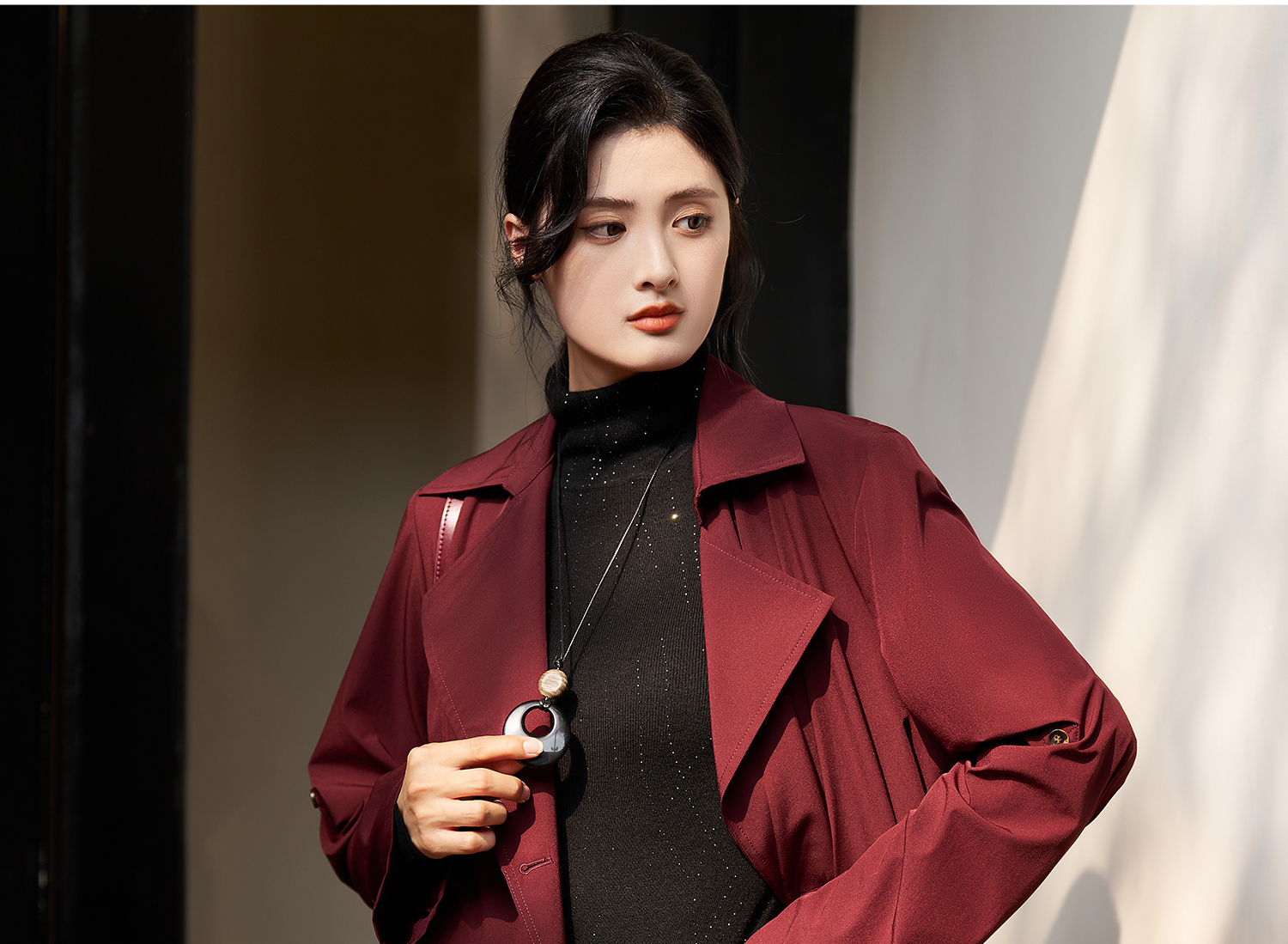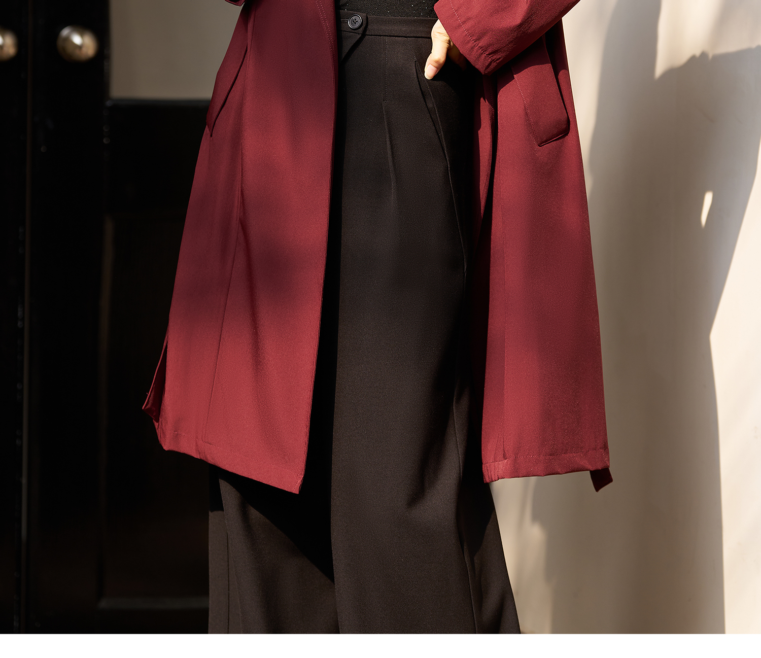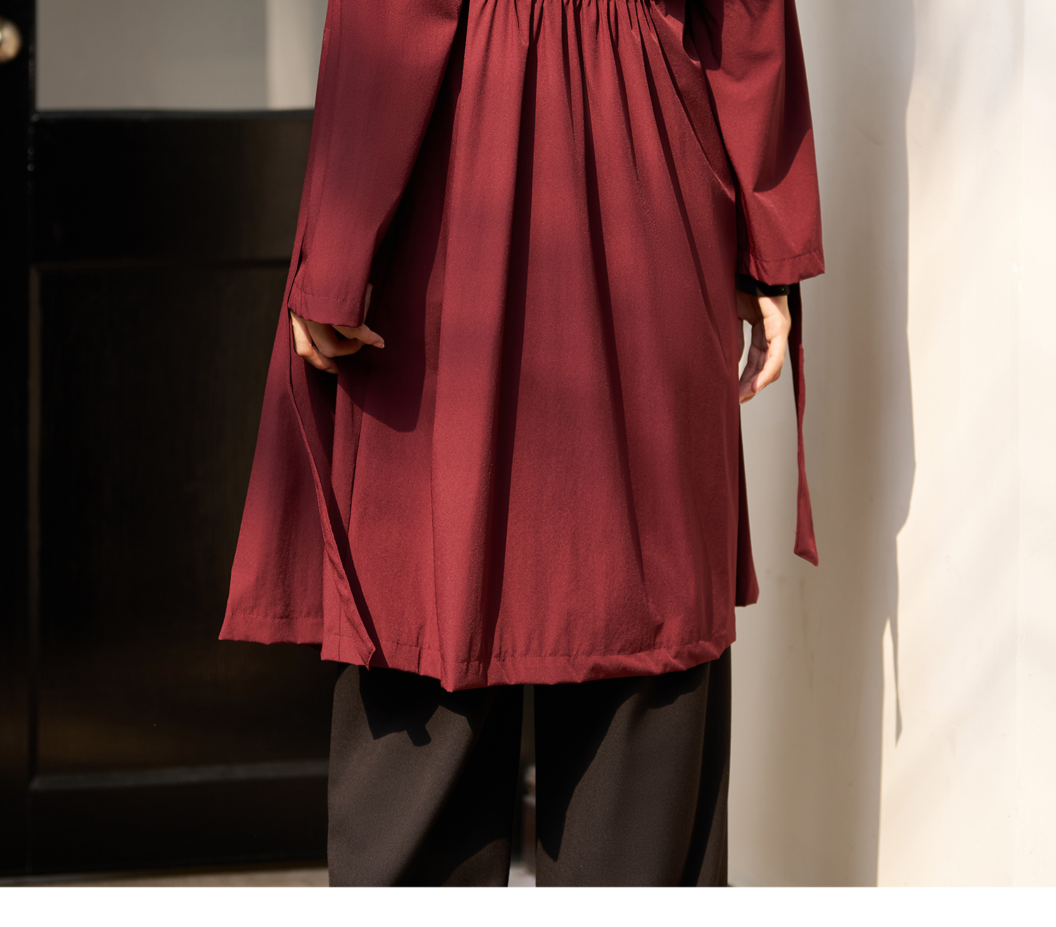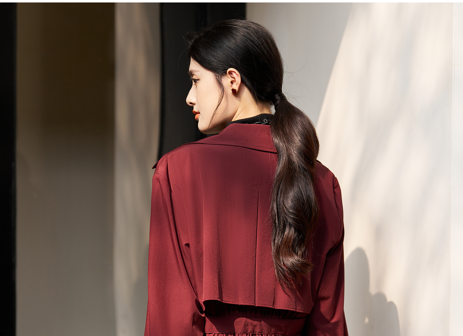 米思阳2026春季新款通勤设计感黑色风衣一粒扣褶皱长袖外套女2600