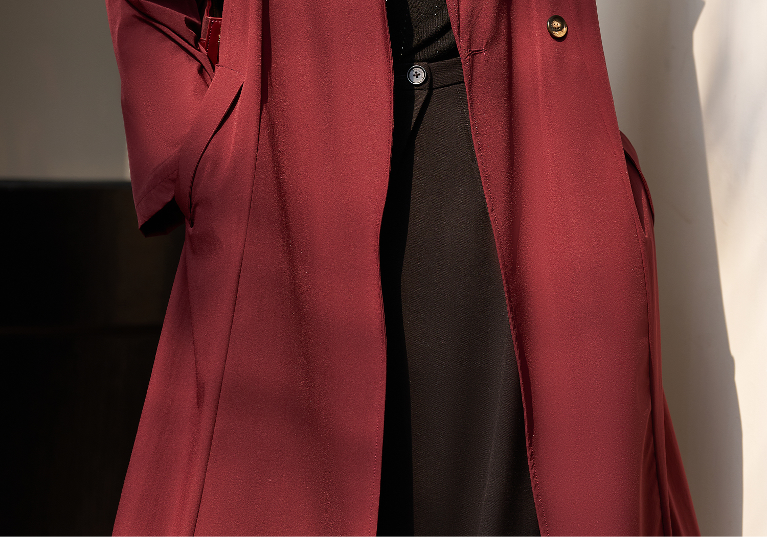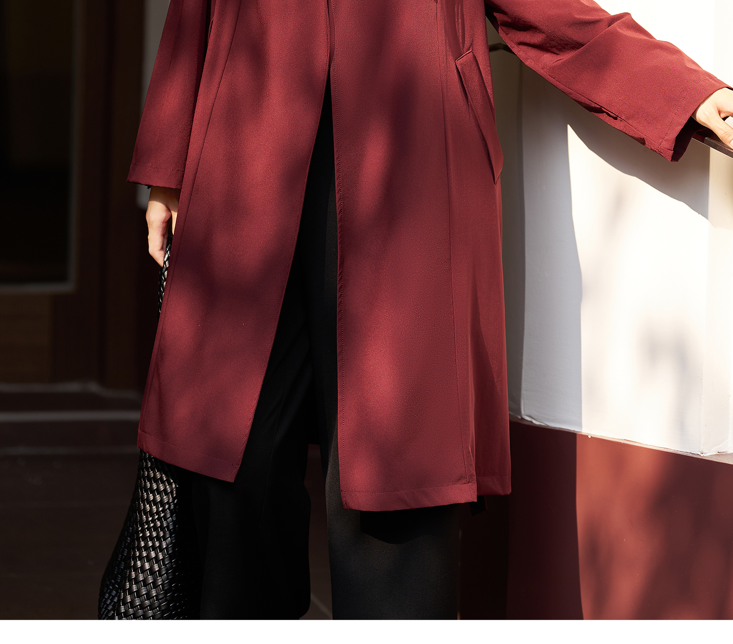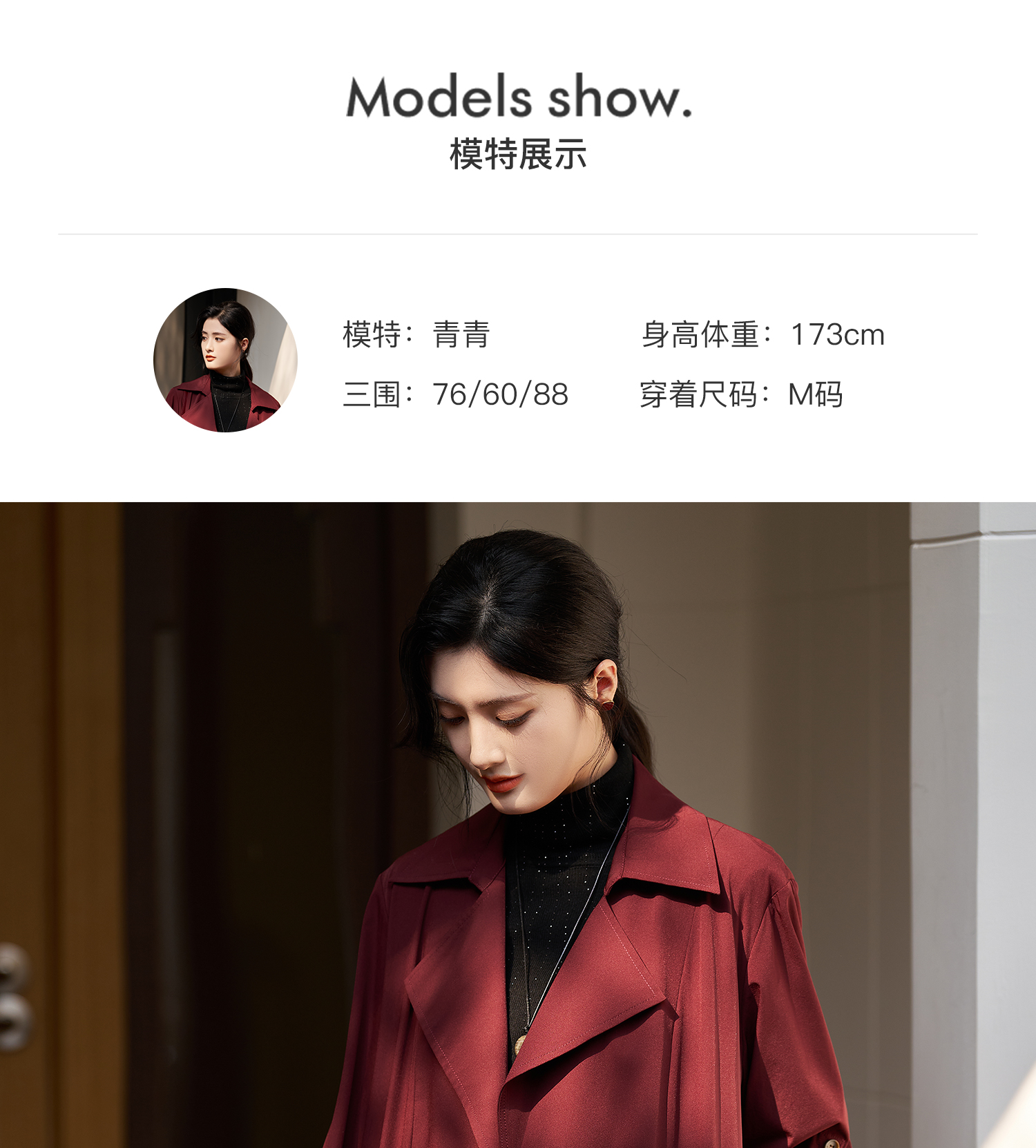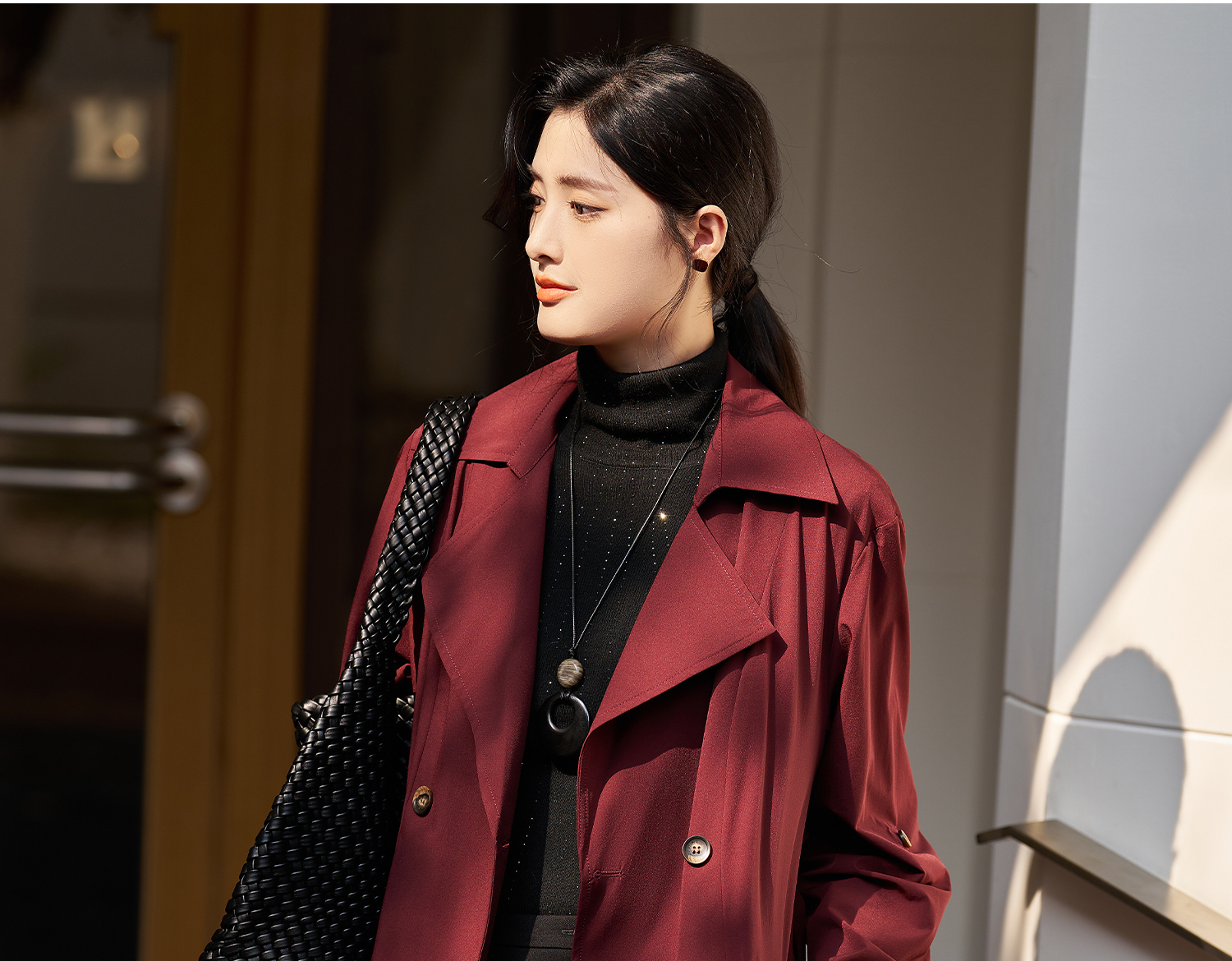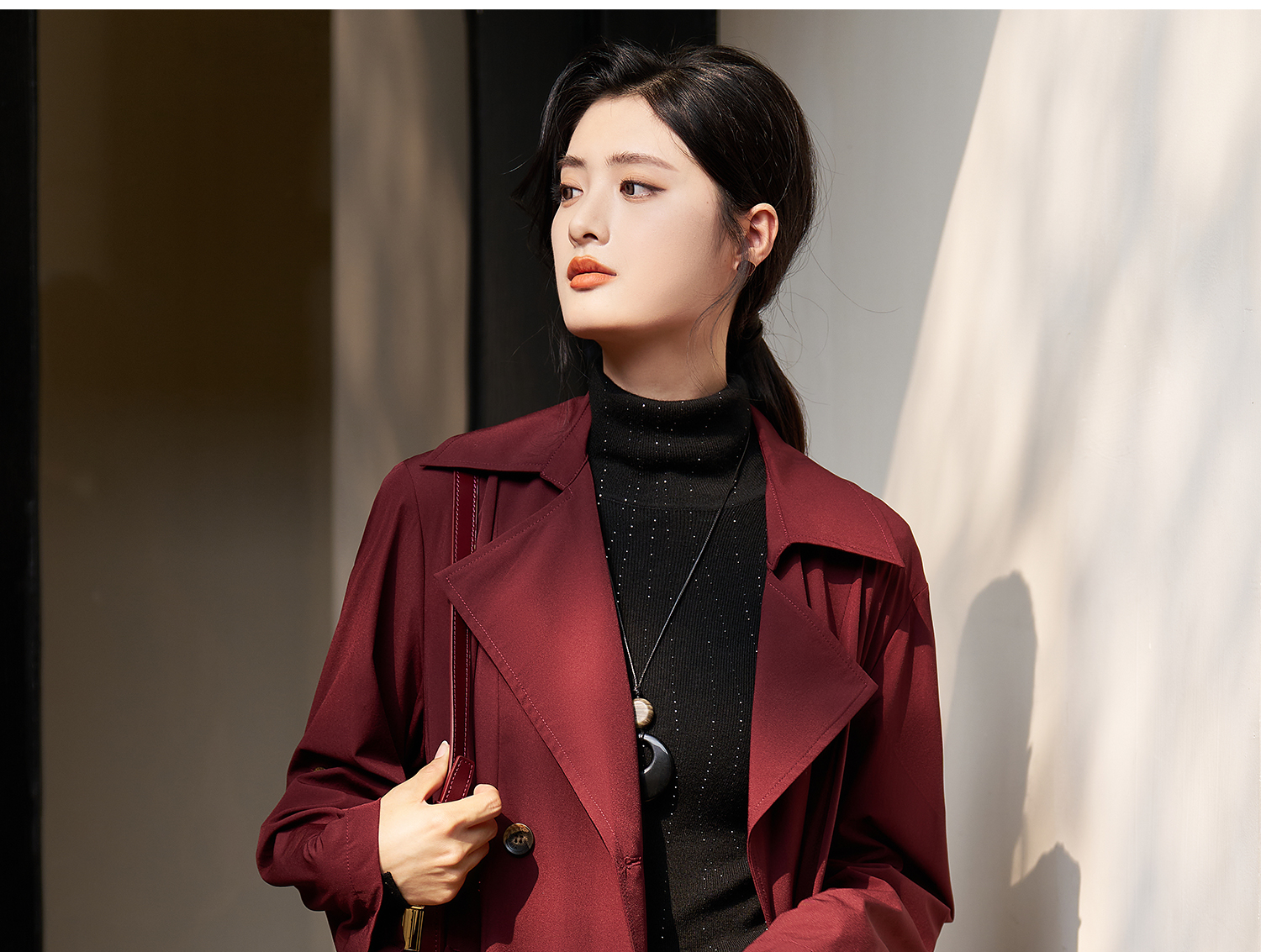 米思阳2026春季新款通勤设计感黑色风衣一粒扣褶皱长袖外套女2600