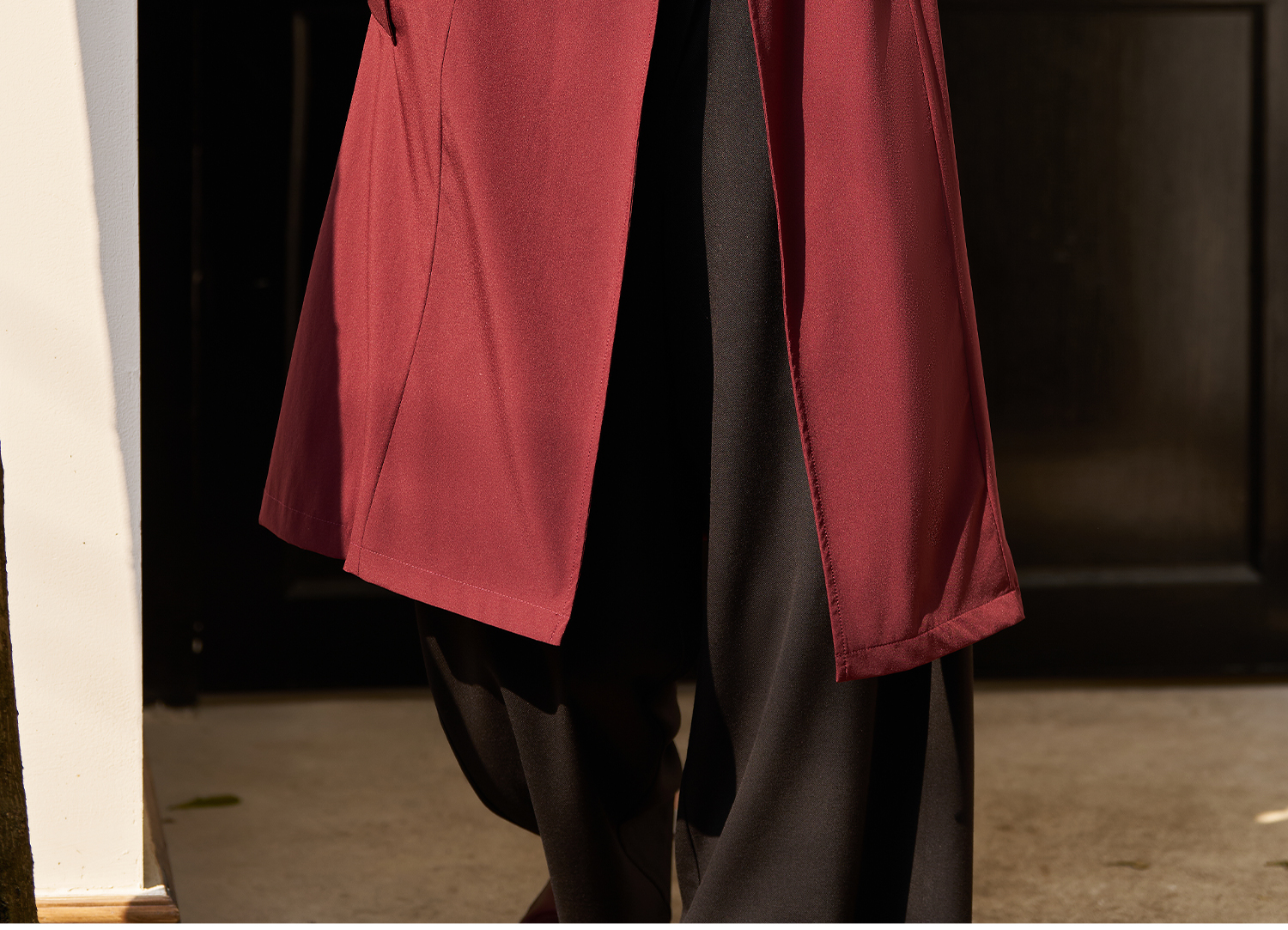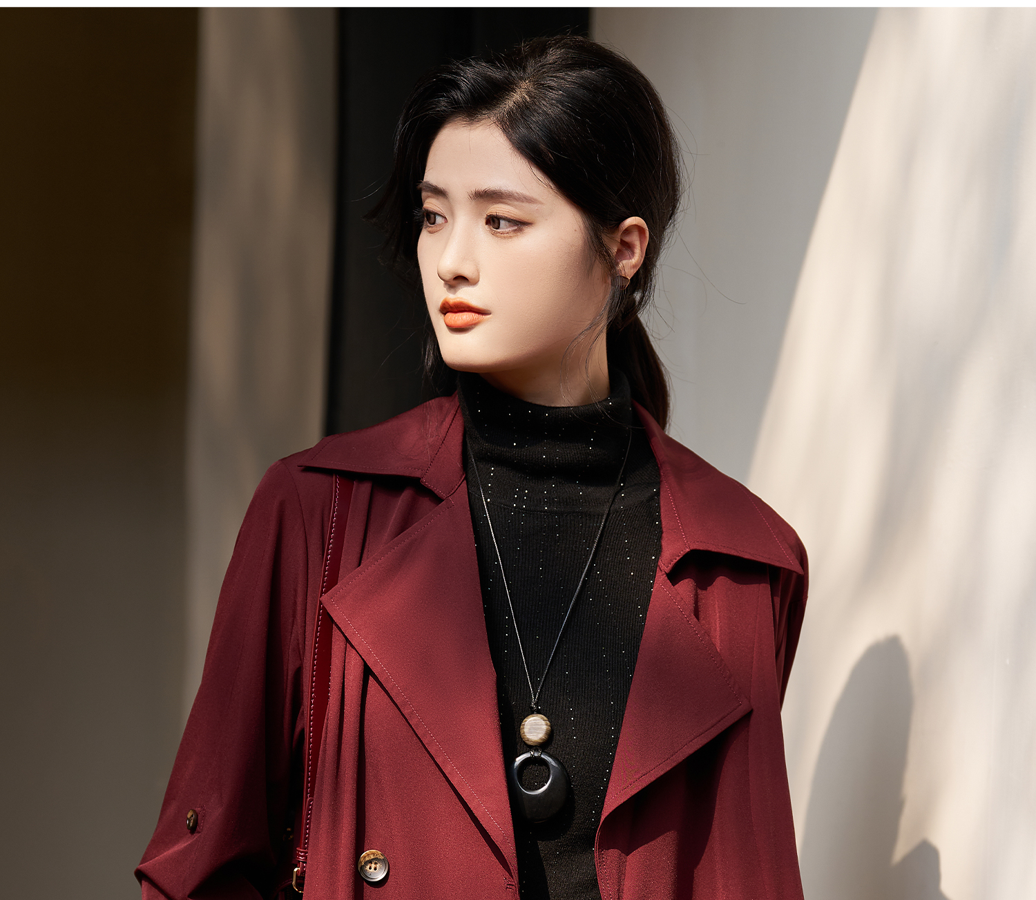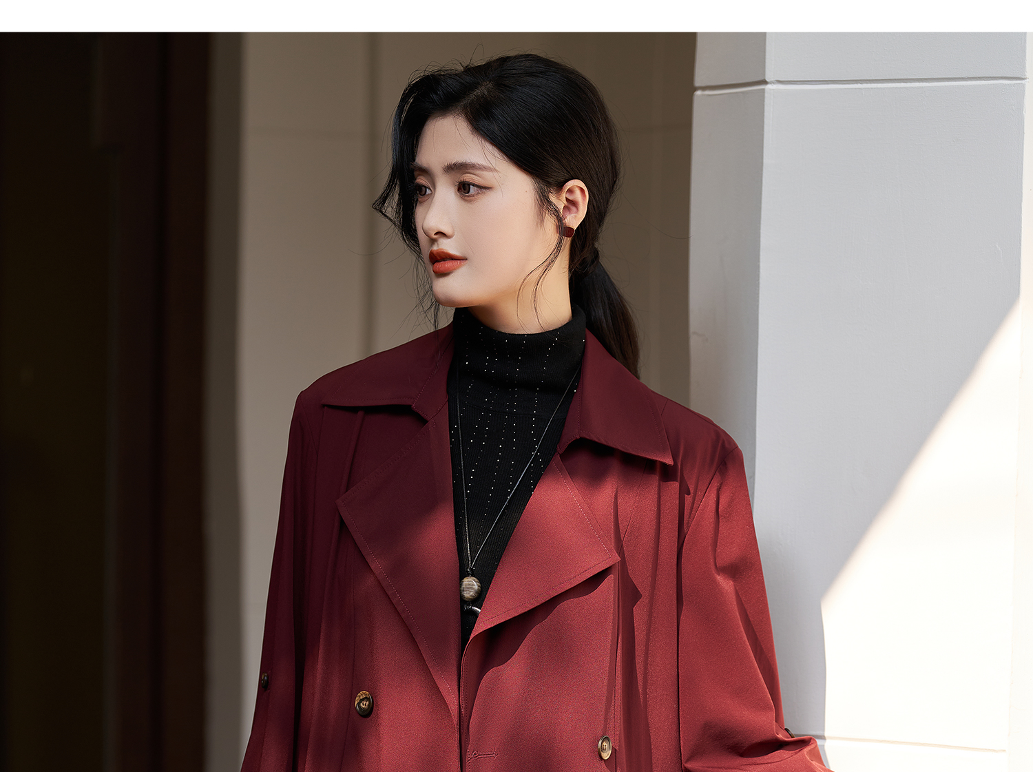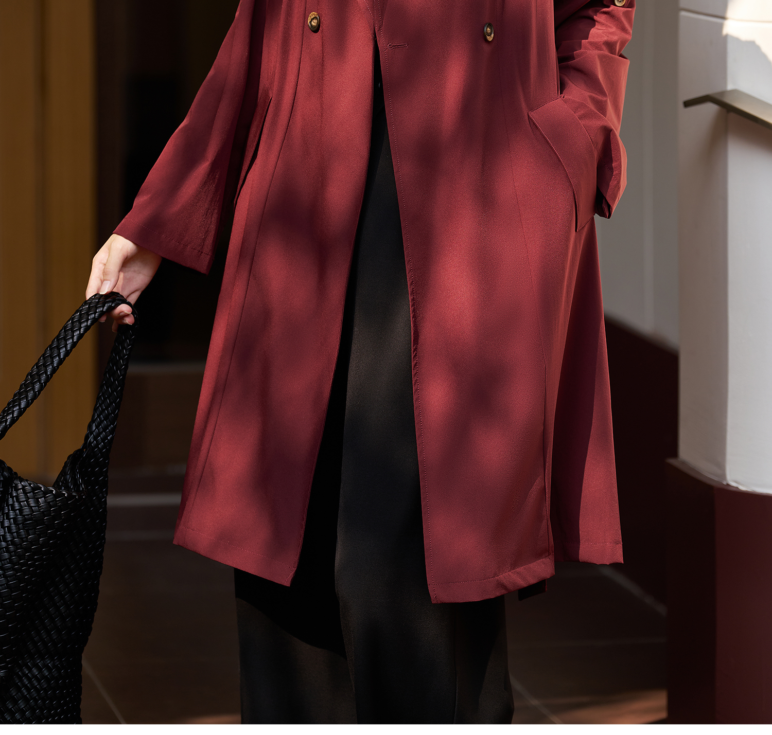 米思阳2026春季新款通勤设计感黑色风衣一粒扣褶皱长袖外套女2600
