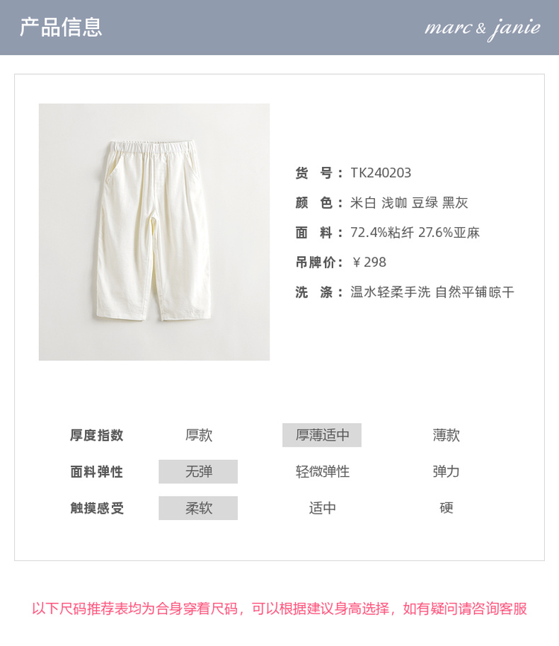 马克珍妮女童宽松清凉亚麻萝卜裤儿童裤子休闲裤春夏新款240203