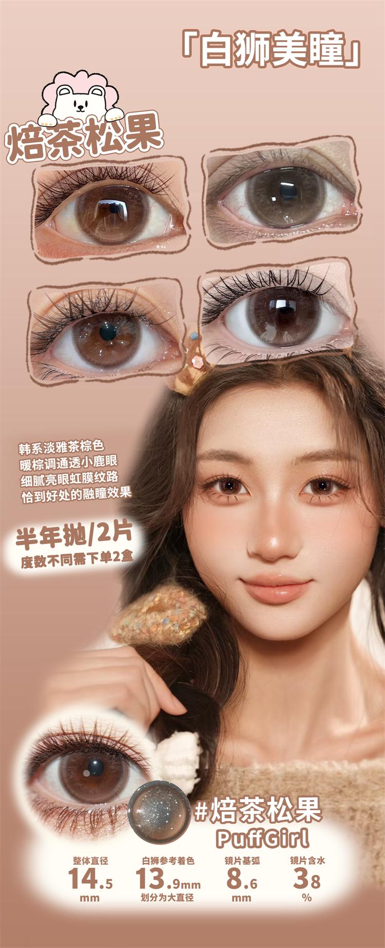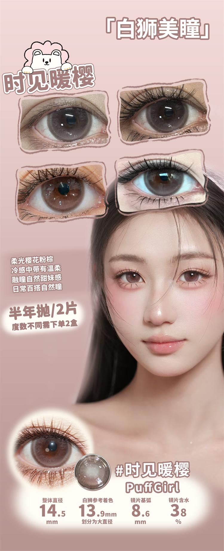 Puff girl半年抛 · 焙茶松果&雾岛初雪&时见暖樱| 14.5mm白狮参考着色大直径|半年抛