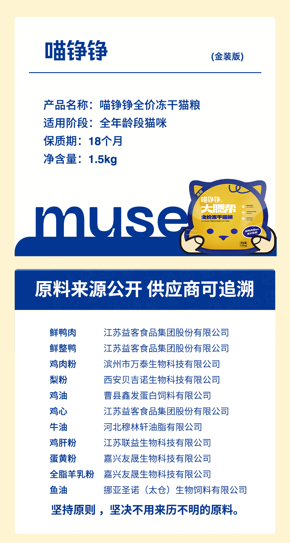喵铮铮金装大腮帮猫粮 3斤/包 鲜鸭肉梨生骨肉沫无谷
