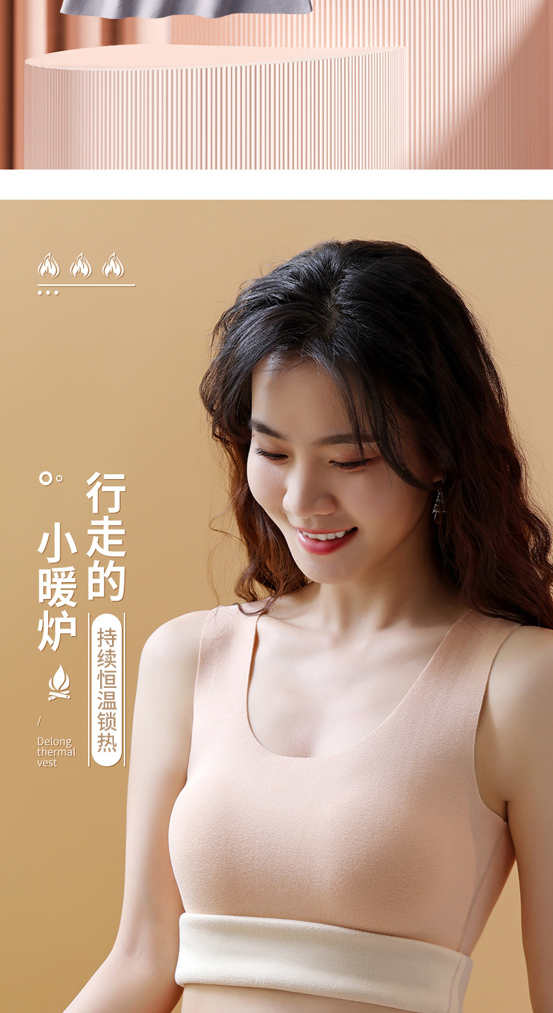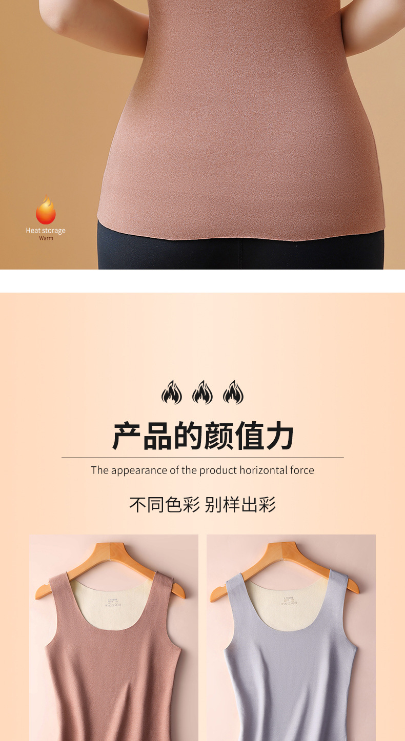 「买1送1!轻上加暖」秋冬新款无痕德绒保暖背心女 双面磨毛纯色内穿打底大码保暖内衣