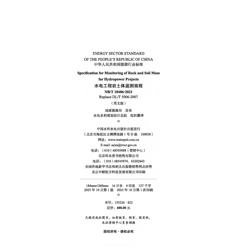 Specification for Monitoring of Rock and Soil Mass for Hydropower Projects(NB/T 10486-2021 Repla...