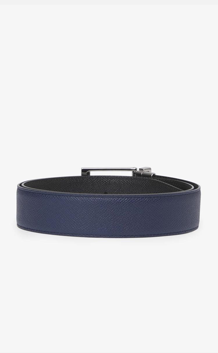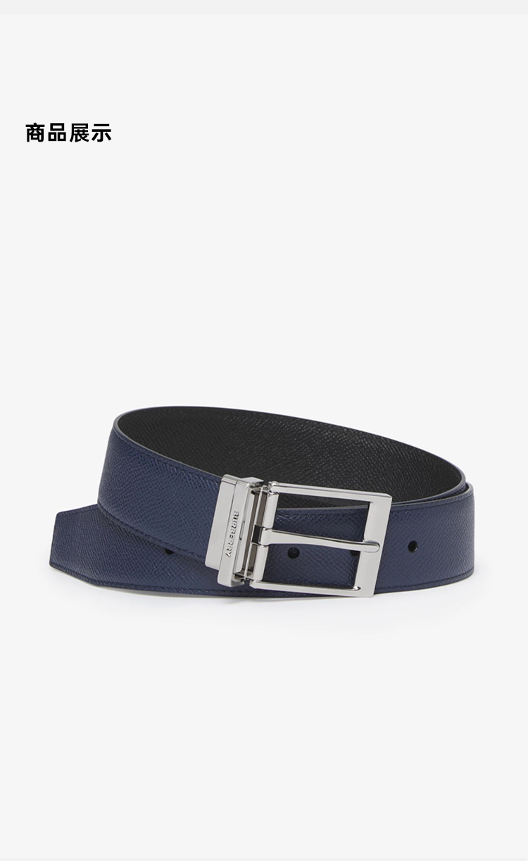 【一】BURBERRY 巴宝莉 男士双面两用粒纹皮革腰带 蓝色 8040191 A1189