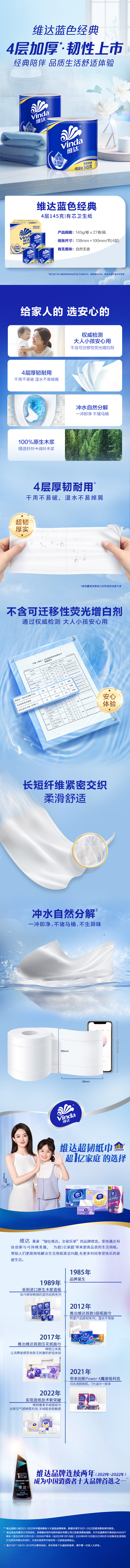 维达145克4层蓝色经典有芯卫卷*27卷-VD4169