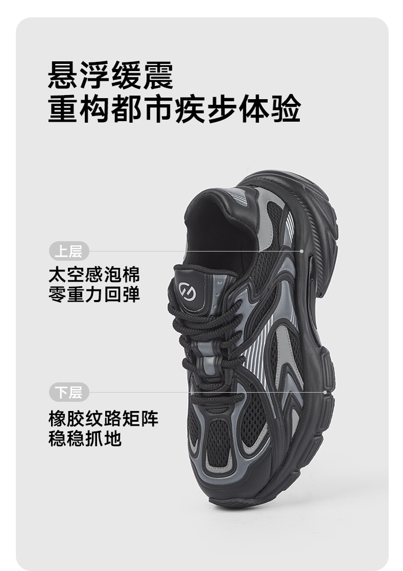 GXG通勤男鞋厚底增高机能潮鞋黑色通勤鞋跑步鞋