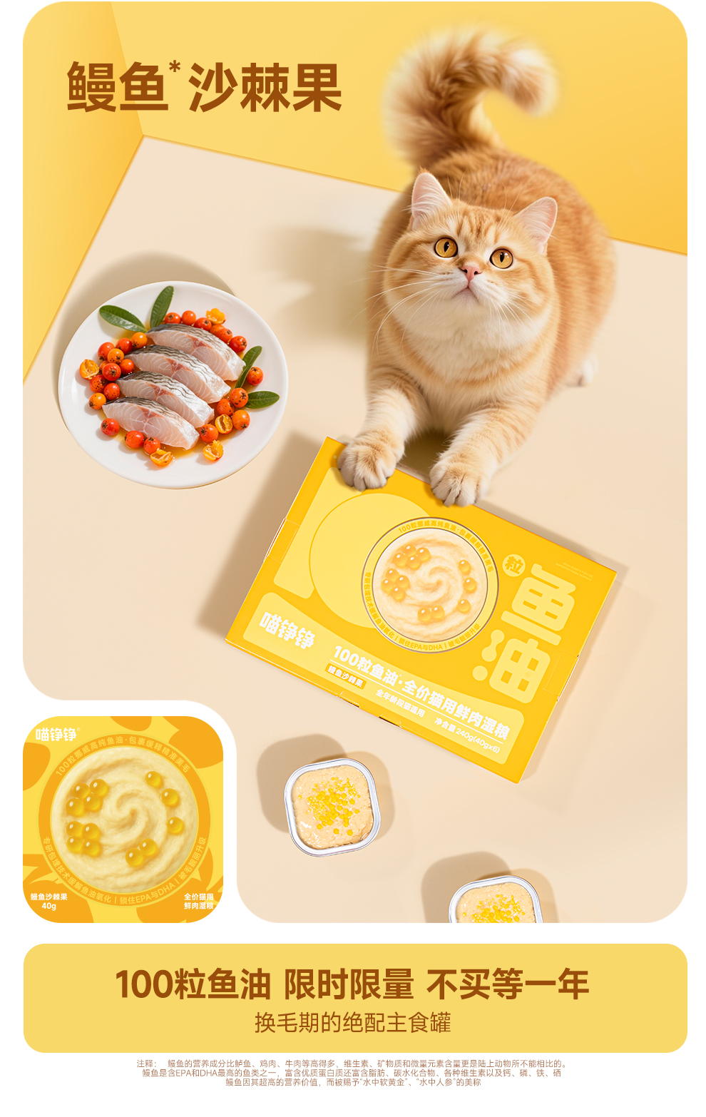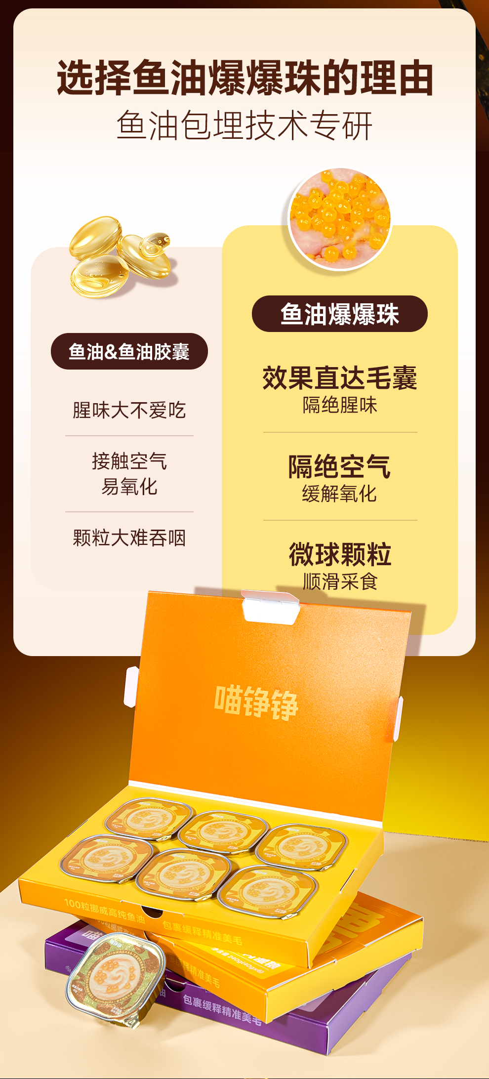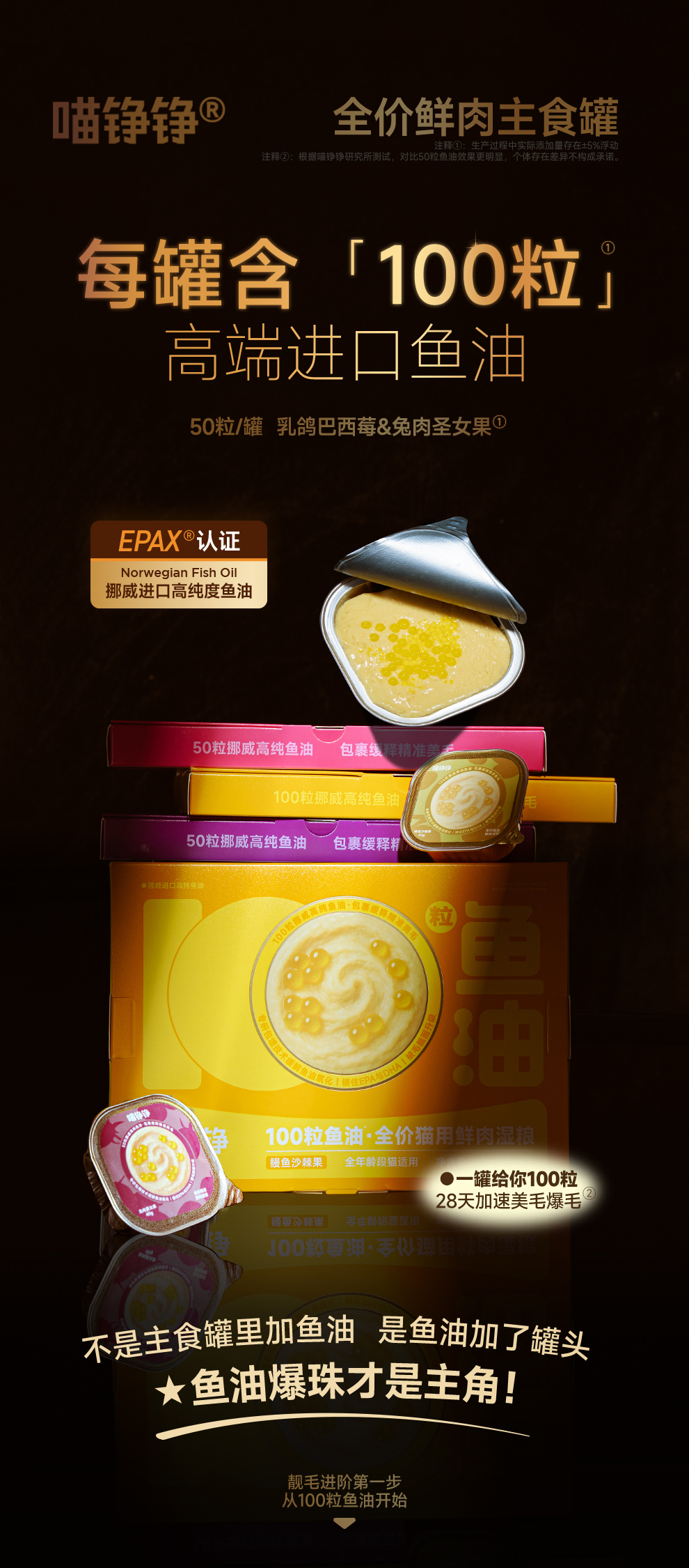 喵铮铮50&100粒鱼油啵啵全价鲜肉主食罐鱼油美毛营养罐头 成幼猫推荐