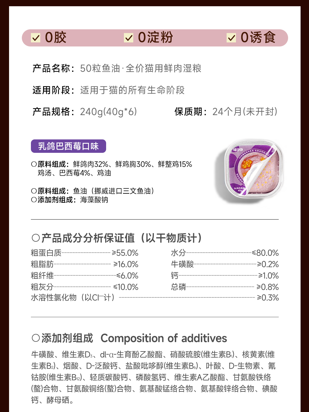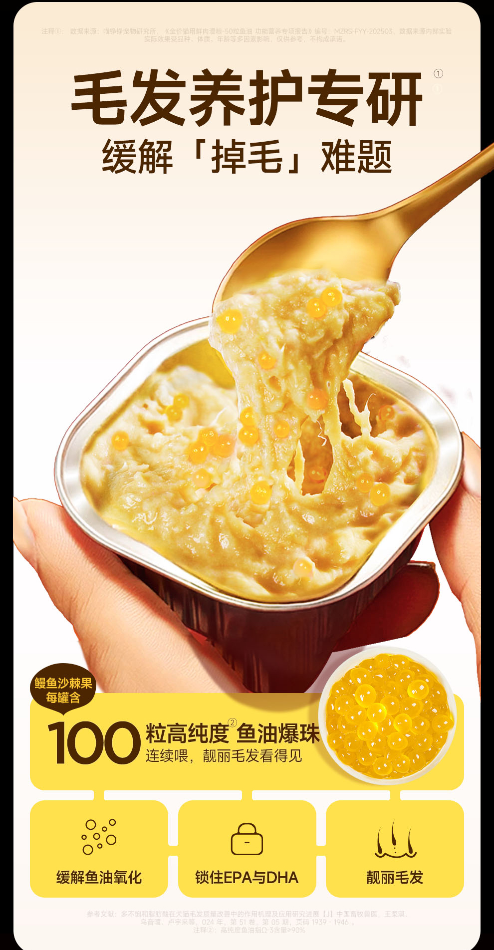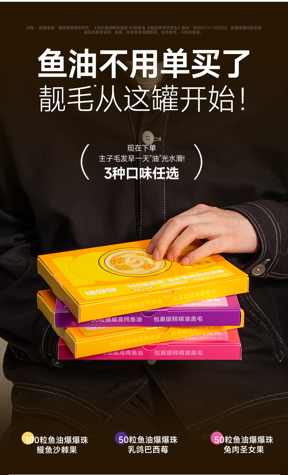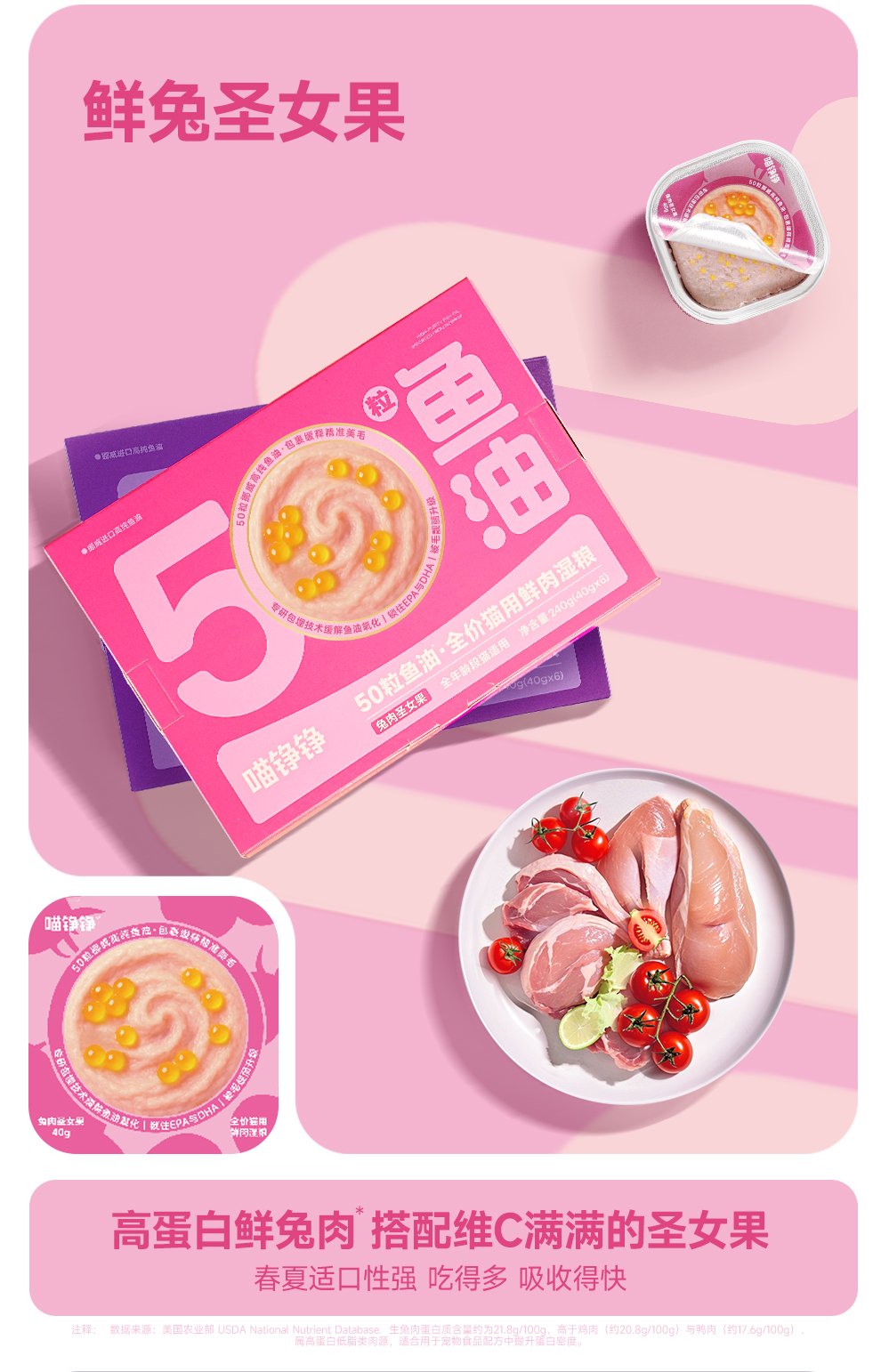 喵铮铮50&100粒鱼油啵啵全价鲜肉主食罐鱼油美毛营养罐头 成幼猫推荐
