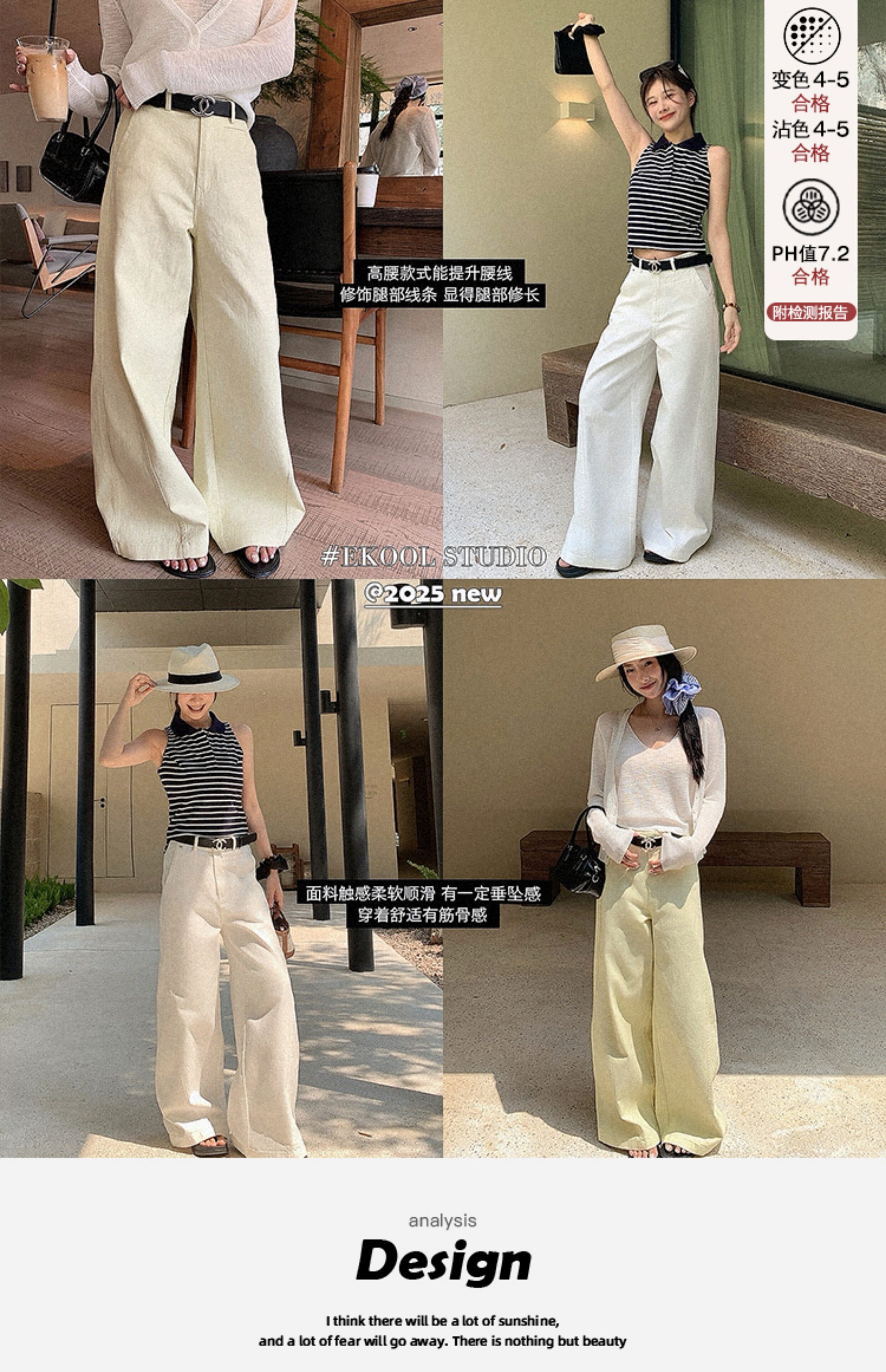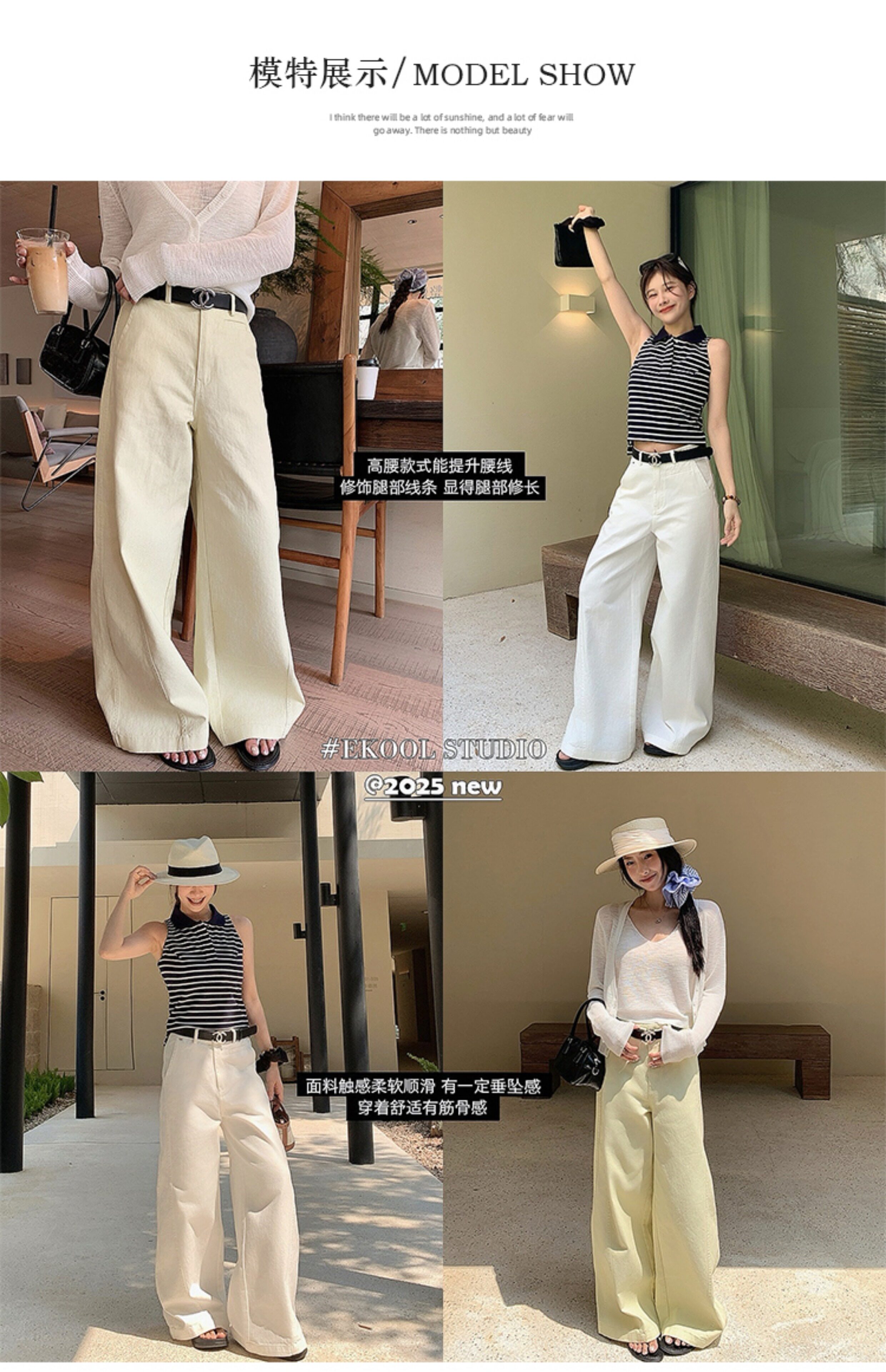 EKOOL衣库 高腰垂感牛仔裤女2025新款夏季小个子宽松显瘦直筒长裤