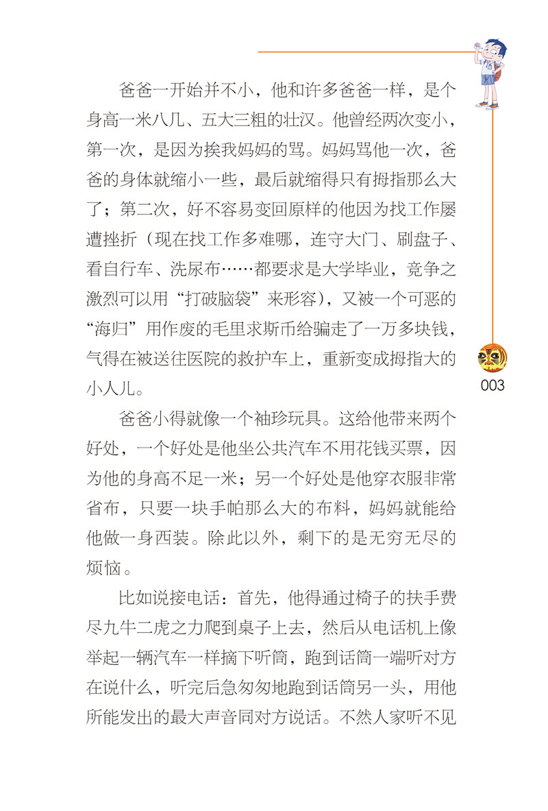 如此奇怪的事情,我是第一次碰到。不过,我并不觉得太惊奇——自从我的爸爸变小之后,不管什么稀奇古怪的事情,我都见怪不怪了。