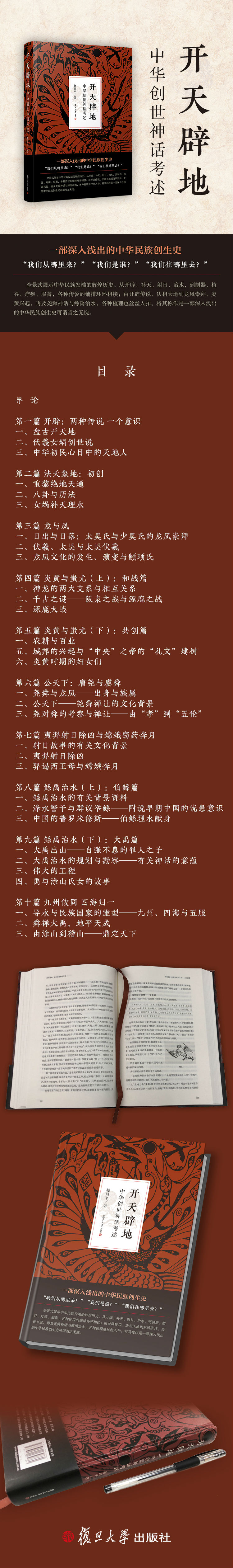 本书全景式地展示了中华民族发端的辉煌历史。从开辟、补天、射日、治水,到制器、植谷、疗疾、服畜,各种传说的铺排环环相接;由开辟传说、法相天地到龙凤崇拜、炎黄兴起,再及尧舜神话与鲧禹治水,各种梳理也丝丝入扣。将其称作一部深入浅出的中华民族创生史可谓当之无愧。——本书匿名学术评审专家