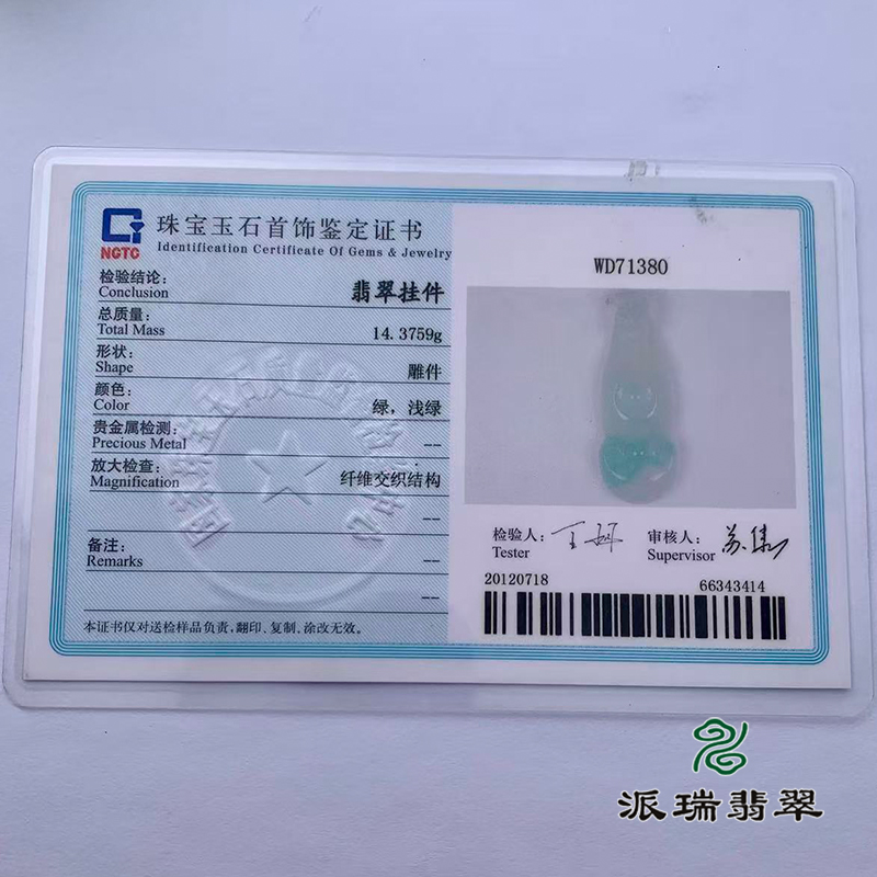 派瑞翡翠 翡翠挂件 糯冰 浅绿