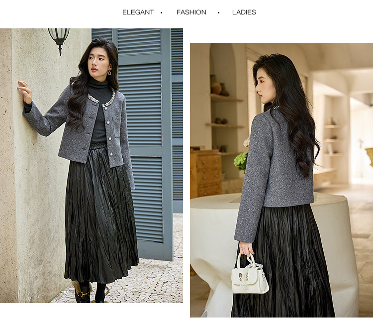 奢姿大码女装2025冬季胖妹妹减龄钻饰设计小香风时尚气质百搭外套9954353798
