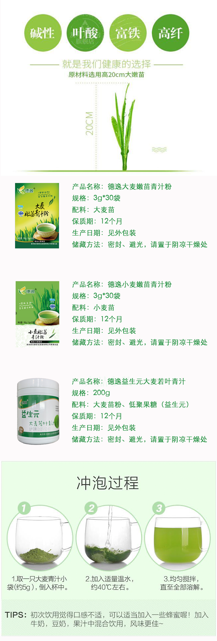德逸大麦/小麦/嫩苗青汁粉 3g*30袋