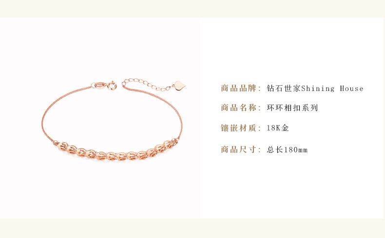【时尚K金】钻石世家 18K环环相扣手链系列 镂空环扣设计 百搭手链 链长大约16-17.5厘米 大约0.75(约0.85±0.1克)