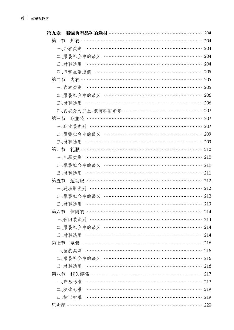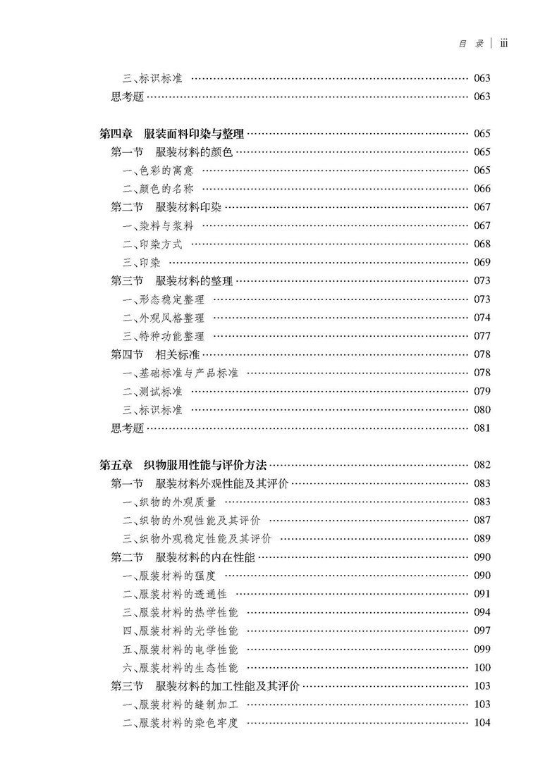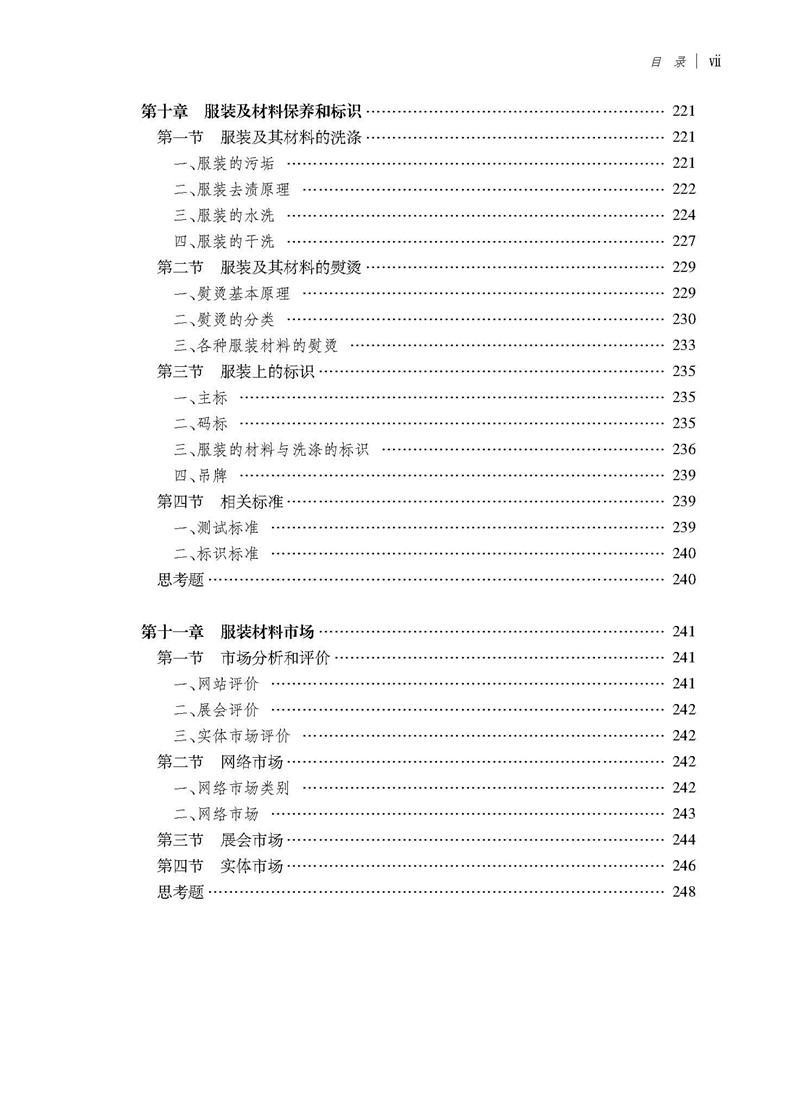本书从服装的要求出发,结合行业标准与国家标准,系统介绍了服装用纤维原料、纱线、织物结构、服装面料印染与整理、织物服用性能与评价方法、织物常规品种与评价、毛皮与皮革的常规品种与评价、服装典型品种的选材、服装及材料保养和标识以及服装材料市场。同时,还介绍了服装衬料、里料、垫料和絮填材料,扣紧材料及其他服装辅料的种类、性能和选用方法,国际服装新材料及其流行趋势,各类服装对材料的要求和选用,并对服装及其材料在加工生产、使用和保管中应注意的事项作了说明。
