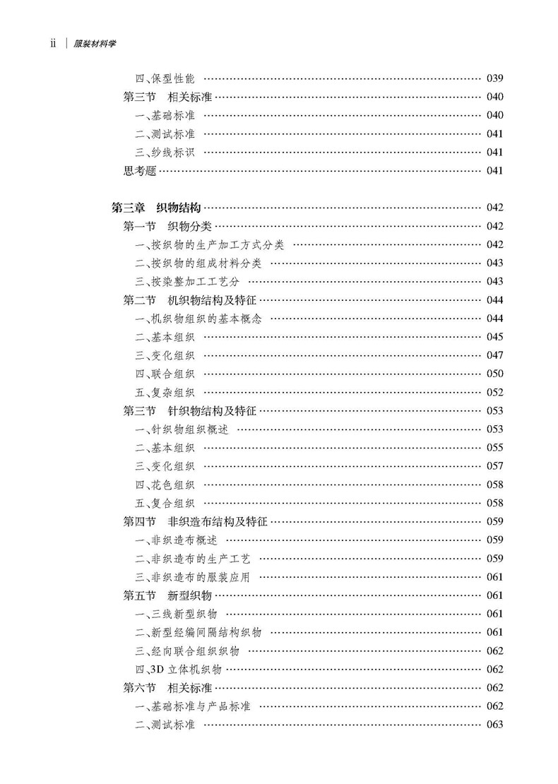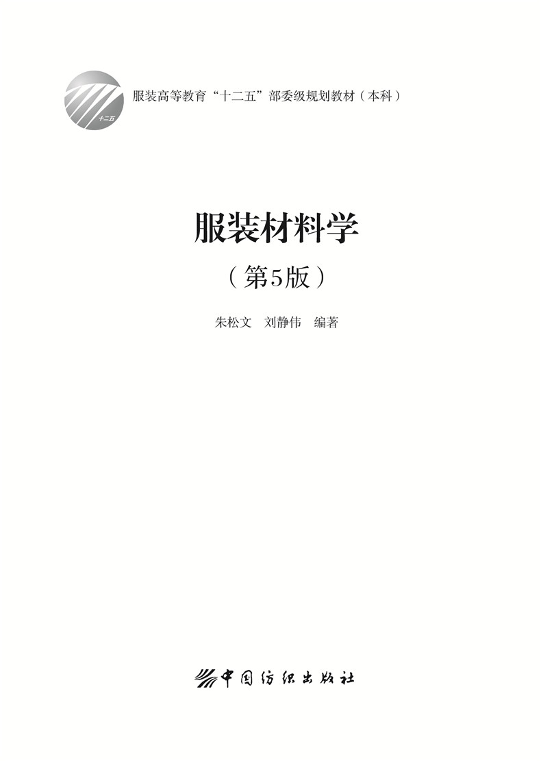 由朱松文、刘静伟编著的《服装材料学(第5版) 》从服装的要求出发,结合行业标准与国家标准,系 统介绍了服装用纤维原料、纱线、织物结构、服装面 料印染与整理、织物服用性能与评价方法、织物常规 品种与评价、毛皮与皮革的常规品种与评价、服装典 型品种的选材、服装及材料保养和标识以及服装材料 市场。同时,还介绍了服装衬料、里料、垫料和絮填 材料,扣紧材料及其他服装辅料的种类、性能和选用 方法,国际服装新材料及其流行趋势,各类服装对材 料的要求和选用,并对服装及其材料在加工生产、使 用和保管中应注意的事项作了说明。