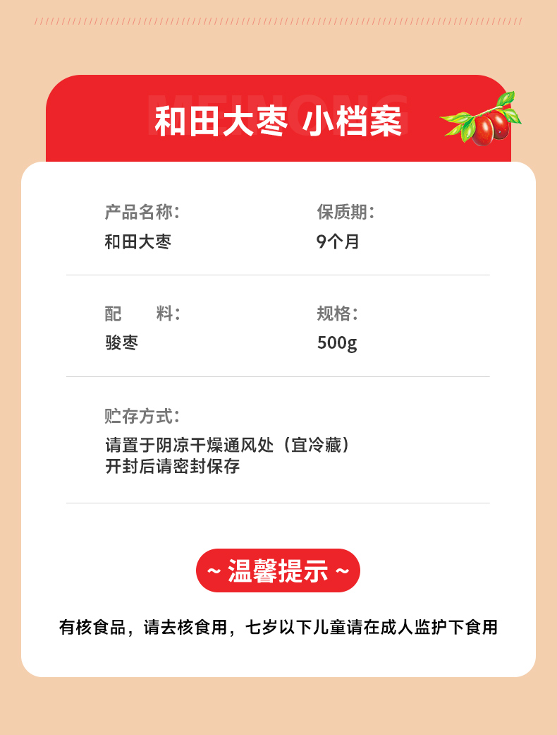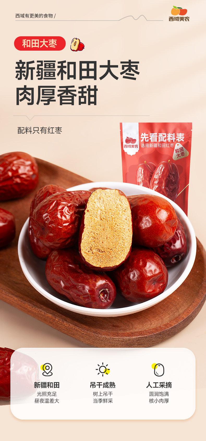 西域美农新疆和田红枣500g 饱满甜蜜 肉厚核小