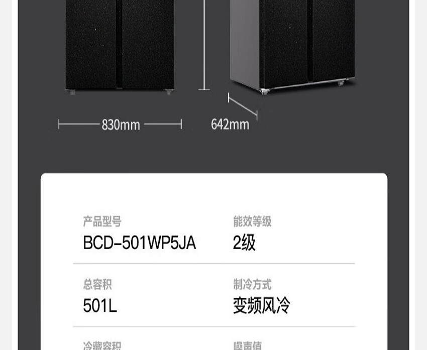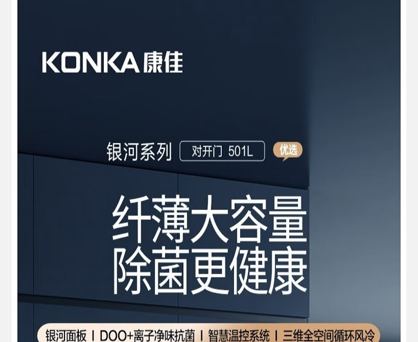康佳(KONKA)BCD-501WP5JA 501L 晶钻灰银河面板 变频风冷除菌净味对开门冰箱